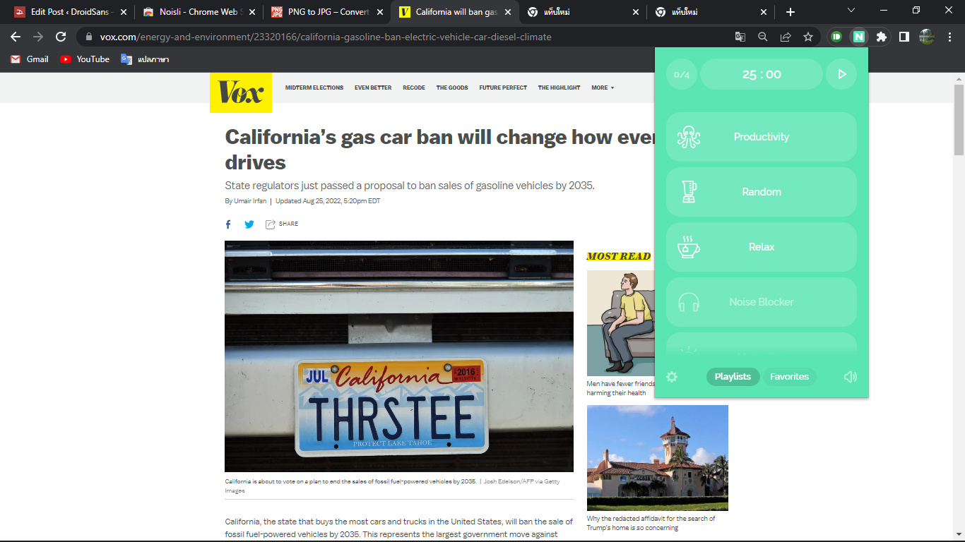 - ตัวเลือกโหมดเสียงเวอร์ชันฟรีมีแค่ 3 อย่าง แค่โหมด Productivity, Random, และ Relax
