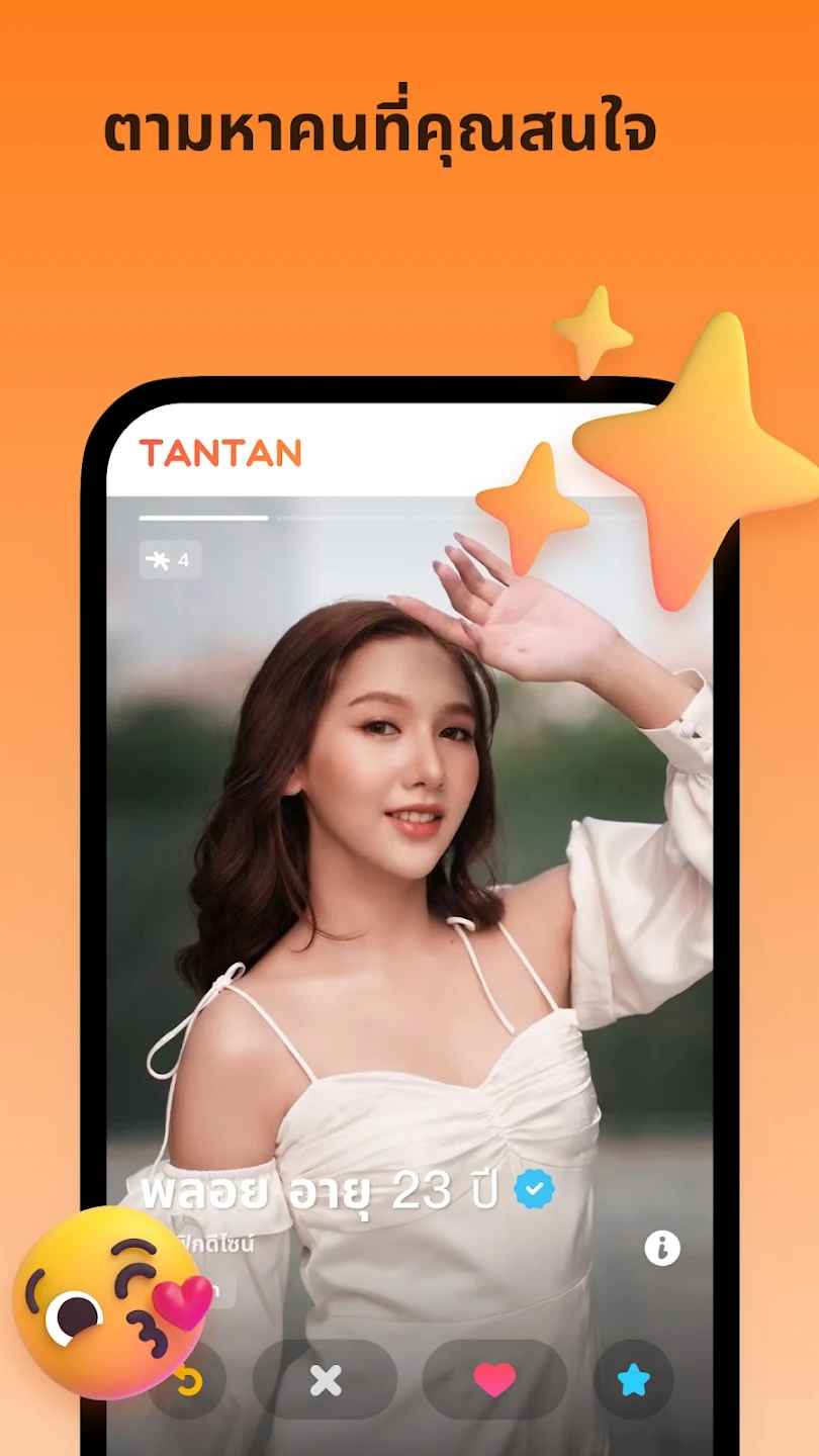 สำหรับใครที่เป็นสายจีน ๆ อยากฝึกสกิลภาษา พร้อมฝึกสกิลหยอดไปพร้อม ๆ กัน TanTan เป็นอีก 1 แอปหาคู่ที่ได้รับความนิยมมาก ๆ ในหมู่คนจีน ฟีเจอร์หลักยังคงใช้ระบบปัดซ้ายขวาให้คนที่ถูกใจที่อยู่ใกล้ ๆ เหมือนแอปอื่น ๆ เช่นกัน แต่พิเศษสุด ๆ ที่ตัวแอปนี้มีฟีเจอร์อย่าง Moment ที่สามารถอัปเดตความเคลื่อนไหวให้กับคนที่แมตช์ได้ รวมถึงยังมีเกมถามตอบ Q&A Game เพื่อกระชับความสัมพันธ์ให้ทั้งสองรู้จักกันมากขึ้น