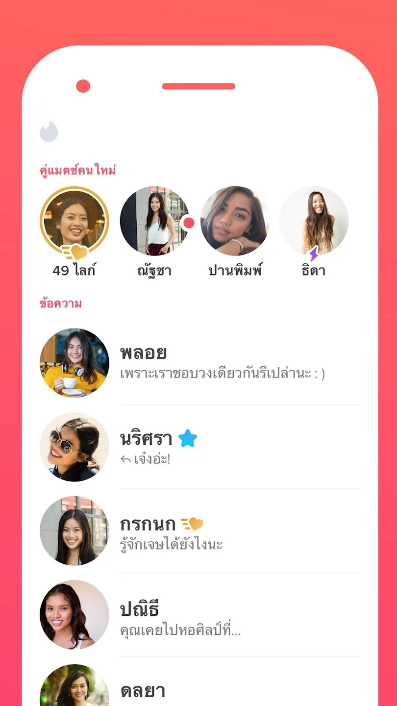 Tinder เป็นแอปยอดนิยมตลอดกาลสำหรับคนโสดทั่วทุกมุมโลก เพราะเขาถือเป็นแอปเจ้าแรก ที่นำระบบปัดซ้าย ขวา เพื่อเลือกคนที่สนใจมาไว้บนแอปมือถือ ตัวแอปจะสุ่มคนที่อยู่ในระยะพื้นที่ที่ผู้ใช้งานกำหนดไว้มาให้เลือกปัด หากคนที่เราสนใจเลือกปัดเหมือนกัน ก็จะสามารถเริ่มบทสนทนาได้ทันที ใครที่กำลังหาเพื่อนฝึกภาษาก็หายห่วง เพราะไม่ว่าจะสายฝอ สายเกา หรือสายไหน ๆ ก็มีให้เลือกปัดได้ เพราะแอปนี้เค้าใช้งานกันทั้งโลกจริง ๆ