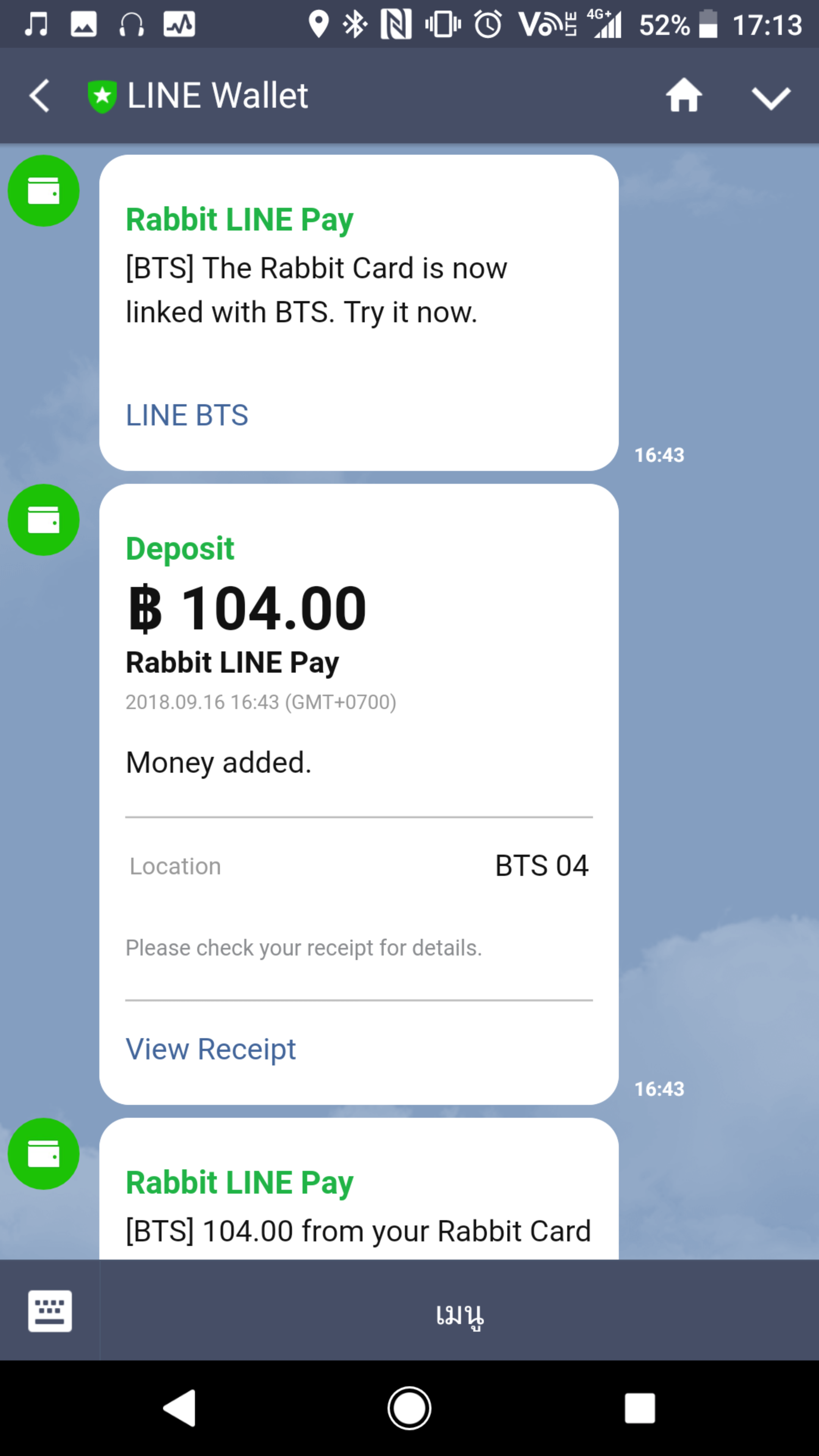 หลังจากที่เราทำการเปิดใช้งานบัตรกับ Rabbit LINE Pay เงินทั้งหมดที่อยู่ในบัตร BTS จะถูกโอนเข้ามาสู่กระเป๋าเงินของ Rabbit LINE Pay ทันที โดนการจ่ายเงินด้วยบัตรหลังจากนี้จะเป็นการตัดผ่าน Wallet นี้โดยตรงเลย และหากใครผูกบัตรเครดิตเอาไว้ ก็สามารถตัดเงินจากบัตรเครดิตเป็นรอบๆไปเลยก็ได้เช่นกัน ไม่ต้องตัดเงินจากบัตรเครดิตเข้า Wallet เป็นก้อนๆนะ