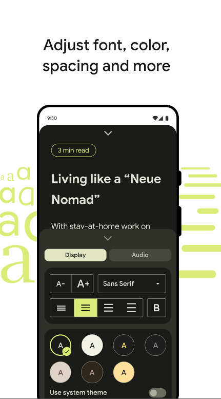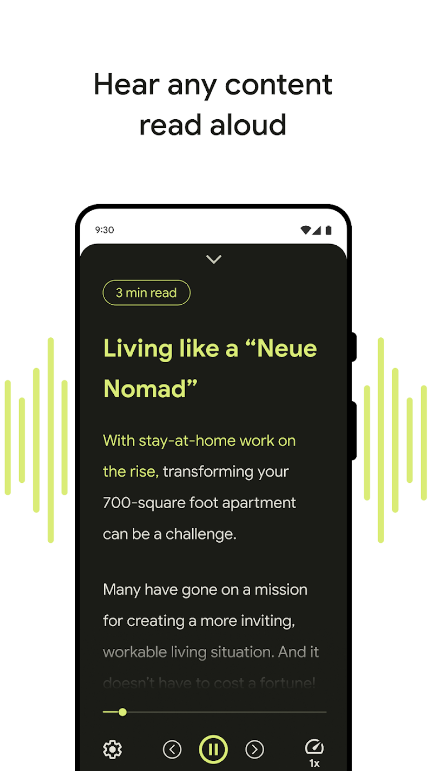 ในการรับฟังคอนเทนต์ต่าง ๆ ผู้ใช้งานสามารถปรับแต่งกำหนดความเร็วในการอ่านออกเสียงของข้อความได้ หรือผู้ที่มีปัญหาทางสายตาหรือมีความผิดปกติทางด้านการอ่านก็สามารถเข้าไปปรับแต่งตัวอักษร, สีตัวอักษร, ระยะห่างตัวอักษรได้