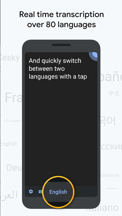 แอปสำหรับผู้มีความบกพร่องทางการได้ยิน ซึ่งสามารถอำนวยความสะดวกสำหรับการสนทนาในชีวิตประจำวันของผู้ที่มีปัญหาในการได้ยินได้ ตัวแอปสามารถแปลงเสียงของผู้สนทนารอบข้างให้กลายเป็นข้อความได้ รองรับมากกว่า 80 ภาษา และสลับระหว่าง 2 ภาษาได้อย่างรวดเร็ว