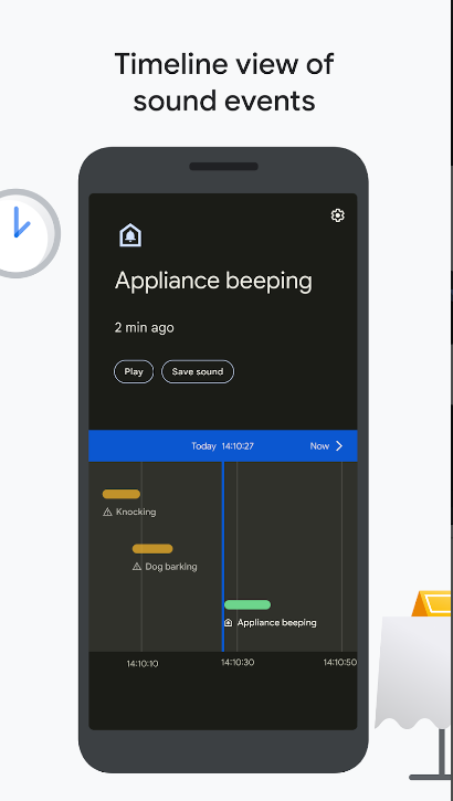 นอกจากนี้แอปยังถอดเสียงที่ผู้ใช้บันทึกไว้ เพื่อใช้แจ้งเตือนเสียงบ่งบอกถึงสถานการณ์ที่มีความเสี่ยงและสถานการณ์ส่วนบุคคลโดยพิจารณาจากเสียงที่ดังขึ้นที่บ้าน เช่น เสียงสัญญาณเตือนควัน เสียงไซเรน เสียงเด็กทารก เป็นต้น อีกทั้งตัวแอปยังบันทึกไทม์ไลน์ของเสียงว่าช่วงเวลาไหนเกิดเสียงอะไรขึ้นบ้างได้ด้วย