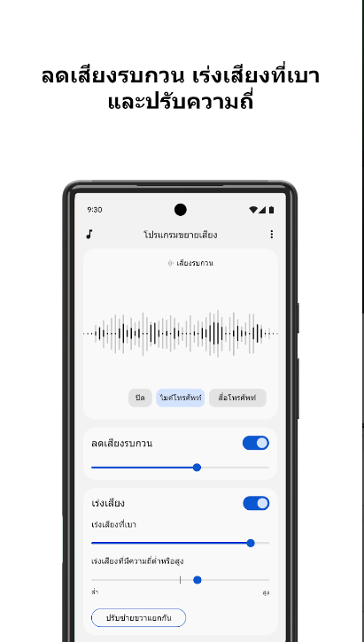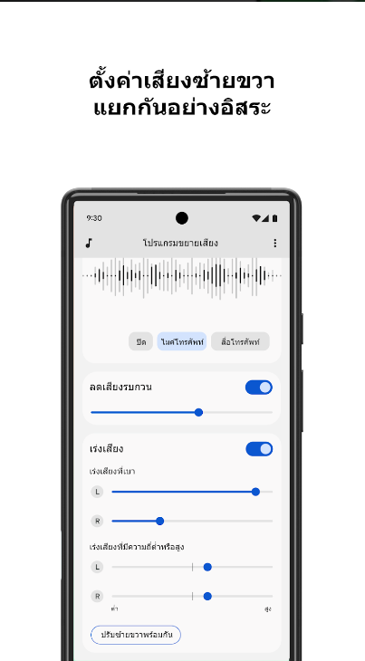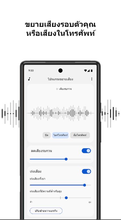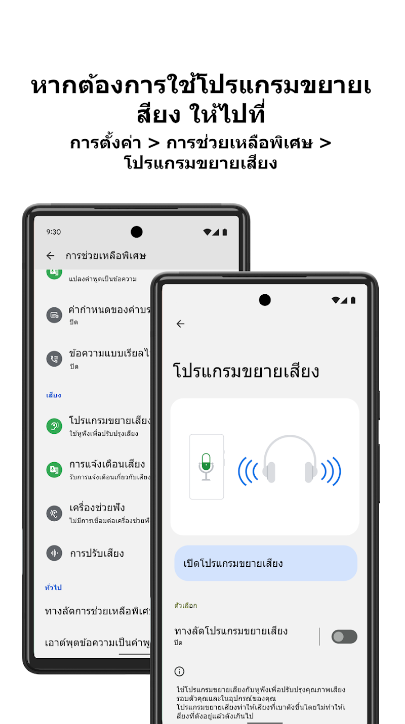 อีกหนึ่งแอปที่ทำออกมาสำหรับผู้มีความบกพร่องทางการได้ยิน ซึ่ง Sound Amplifier เป็นแอปขยายเสียงที่ผู้ใช้งานต้องการฟังได้ชัดเจนขึ้น โดยจะตัดเสียงรอบรบกวนรอบข้างออกไป อีกทั้งยังสามารถปรับแต่งเสียงให้เป็นไปตามความต้องการของผู้ใช้งานได้ ทั้งความดัง – เบา หรือความถี่ ในการใช้งานแอปจะต้องใช้ร่วมกับหูฟังซึ่งจะสามารถตั้งค่าเสียงซ้ายขวาแยกกันอย่างอิสระ