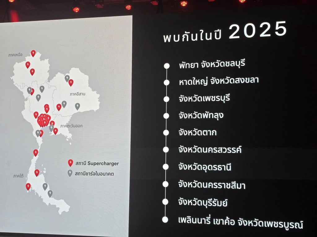 รวมตำแหน่งและข้อมูล Supercharger ทั้งหมดในไทย