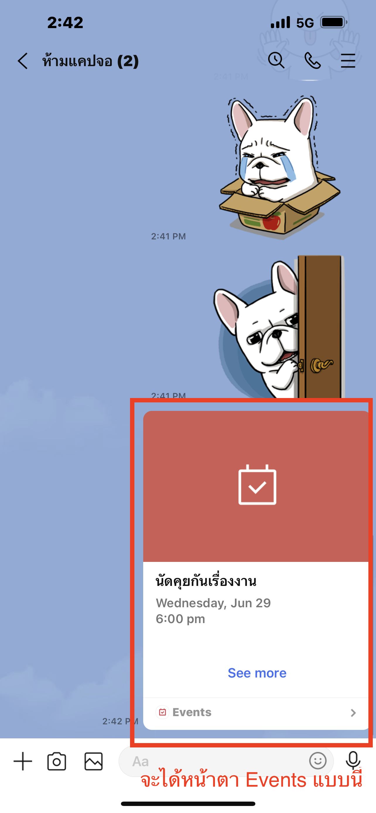 จะนัดเพื่อนเดี่ยวๆ หรือนัดรวมกันเป็นกลุ่ม เคยเจอปัญหานี้กันมั้ย ที่อยู่ๆเพื่อนก็บอกว่า “ไม่เห็นรู้เรื่องเลย เรานัดกันหรอ” เชื่อว่าทุกคนต้องมีสักครั้งแหละที่เจอปัญหานี้ แต่ตอนนี้ ฟีเจอร์ Events ใน LINE จะมาช่วยแก้ปัญหาเรื่องนี้ได้ ทำให้ เราสร้าง Event เจาะจงวันที่, ใส่รายละเอียด, ใส่สถานที่, และตั้งแจ้งเตือนได้เลย เหมือนเราสร้าง Event ในแอปปฏิธินบนมือถือของเราเลย แถมยังส่งให้มันเข้าไปอยู่ในปฏิธินในเครื่องได้ด้วยนะ ฟีเจอร์นี้เหมาะมากถ้าจะนัดเพื่อนๆ ก็สร้าง Events ไว้ล่วงหน้าไปเลย