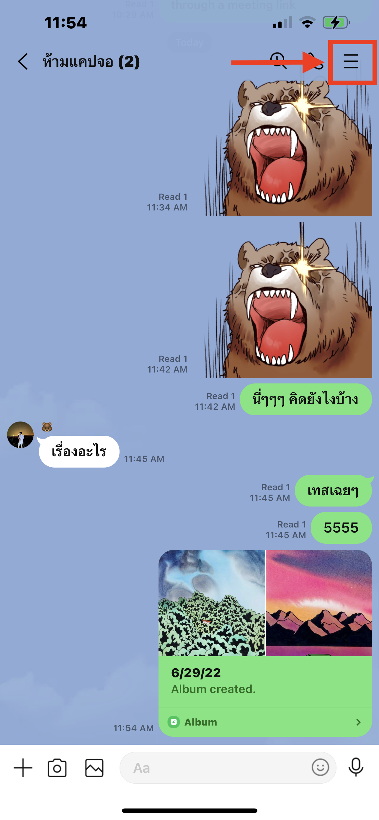 วิธีสร้าง Album เข้าไปที่ห้องแชทที่เราต้องการ กดเลือกที่ปุ่ม 3 ขีดด้านขวาบน > กดเลือกในส่วนของ Album > กด + เพื่อสร้าง Album ใหม่