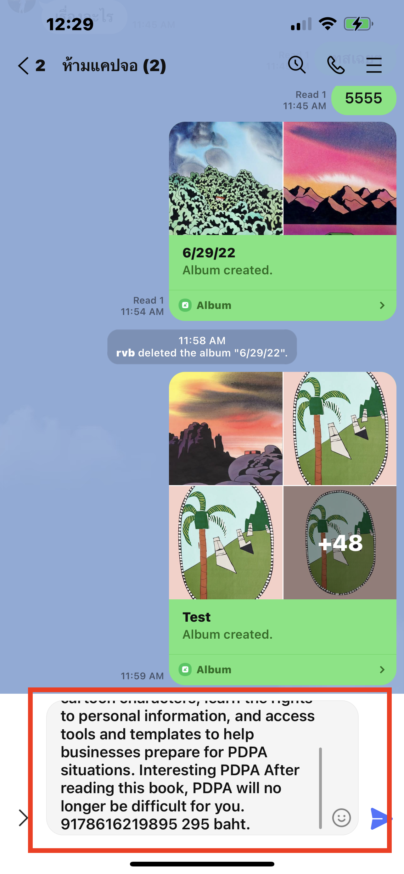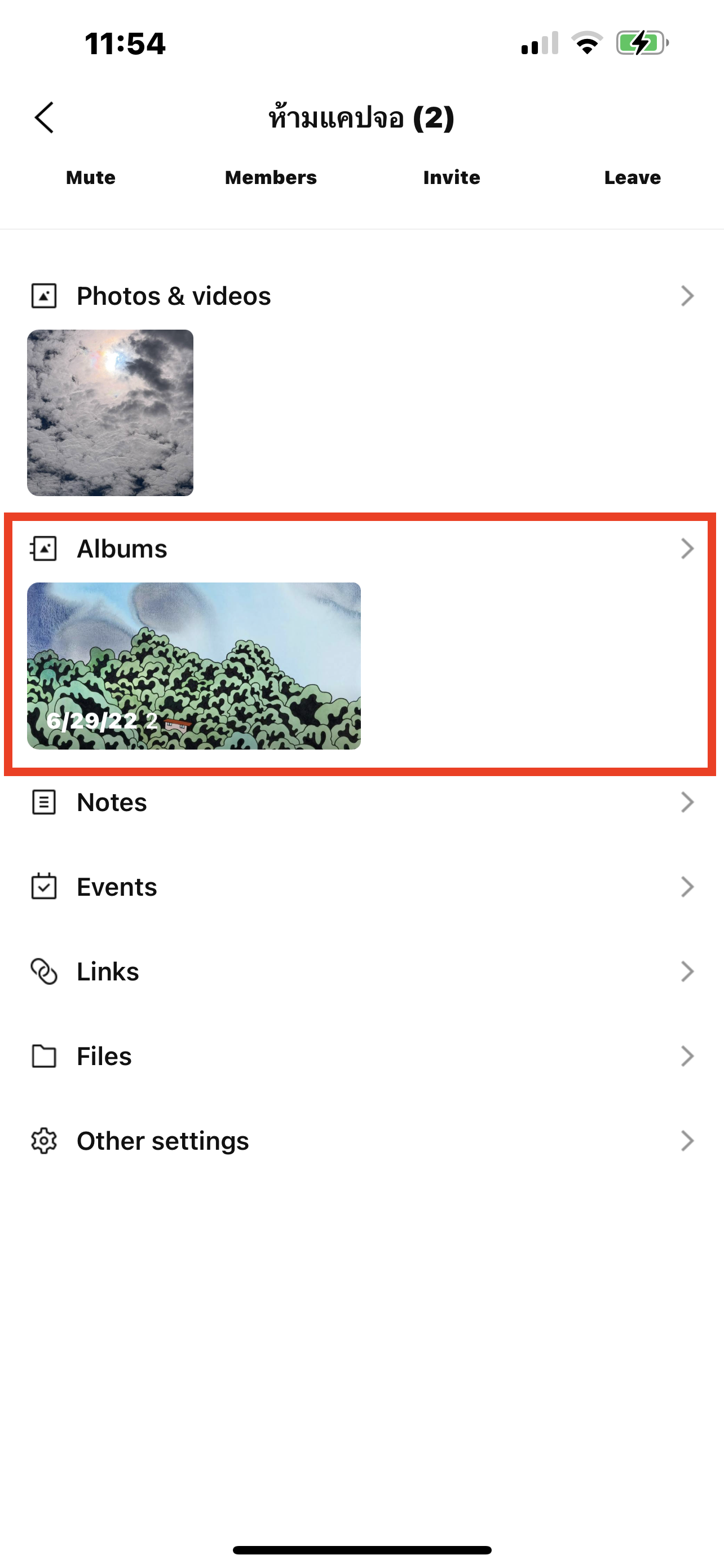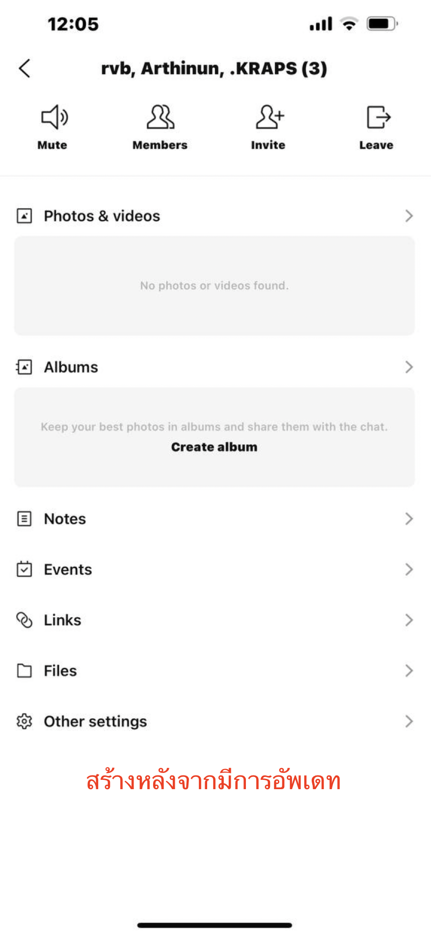 มีข้อสังเกตุนิดนึงนะ คือ ภาพซ้ายภาพที่ถูกสร้างห้องแชทแบบ Chat with multiple members มานานแล้วจะยังไม่สามารถสร้าง Album ได้