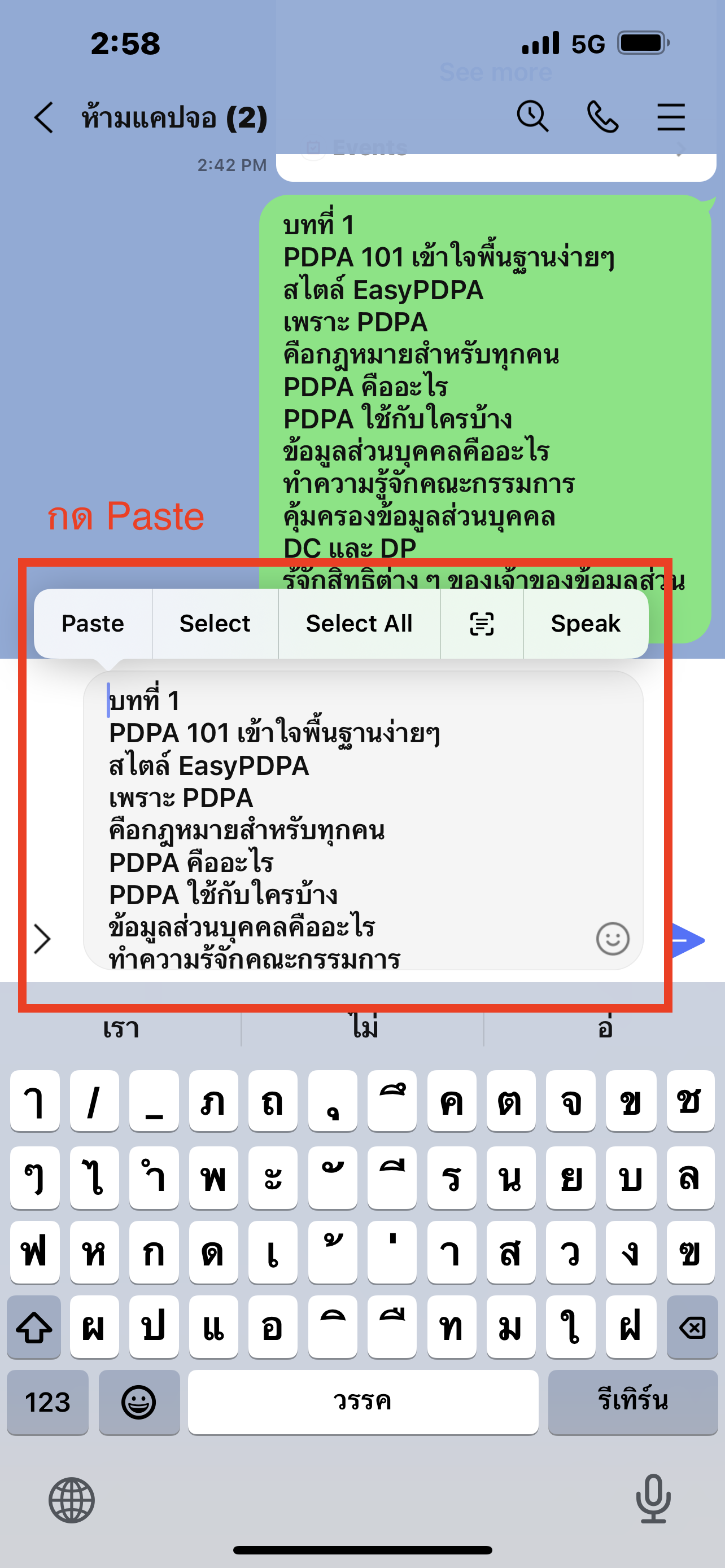 ฟีเจอร์นี้เป็นฟีเจอร์ที่ใช้งานง่ายมาก จะช่วยให้เราสามารถ Copy ข้อความบางส่วนจากแชทได้เลย เพราะปกติแล้วเวลาเราจะ Copy มันจะมาทั้งก้อนแชทนั้นเลยบางทีอาจจะไม่สะดวกเพราะต้องมาแก้ มาลบ มาเลือกส่วนที่ต้องการอีกทีมีขั้นตอนค่อนข้างวุ่นวาย แต่ฟีเจอร์นี้ทำให้เราเลือกเฉพาะส่วนที่ต้องการได้แบบทันทีที่เรากด Copy เลย