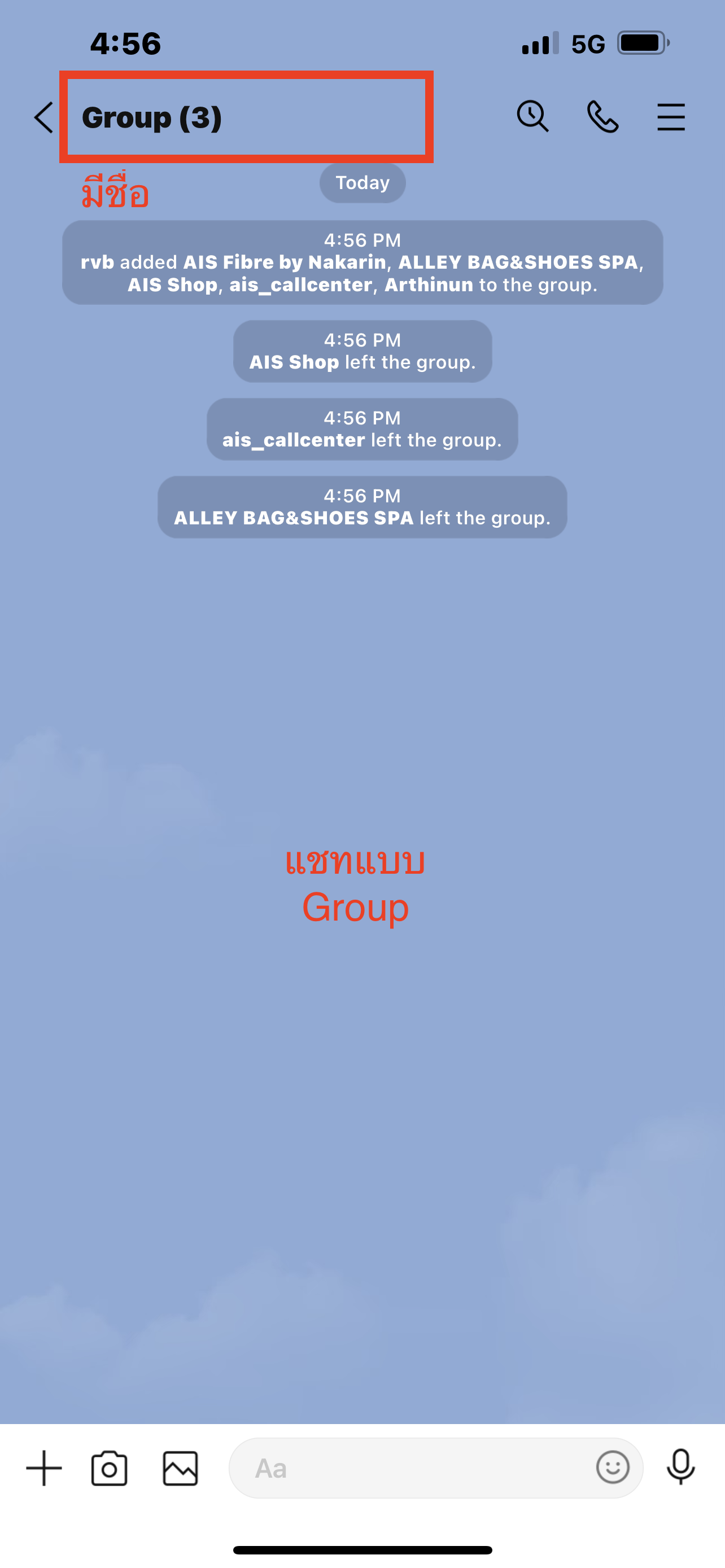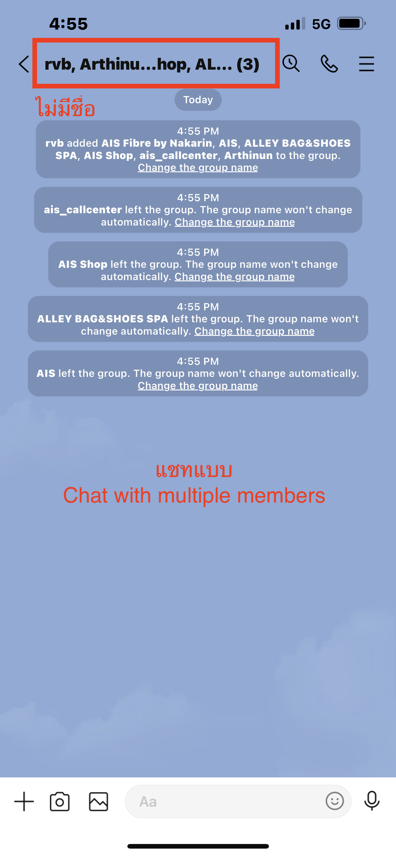 3. Chat with multiple members ถ้ามีคนลบแชท = ออกจากกลุ่มเลยอัติโนมัติ แต่ Group จะต้องกด Leave group เท่านั้น