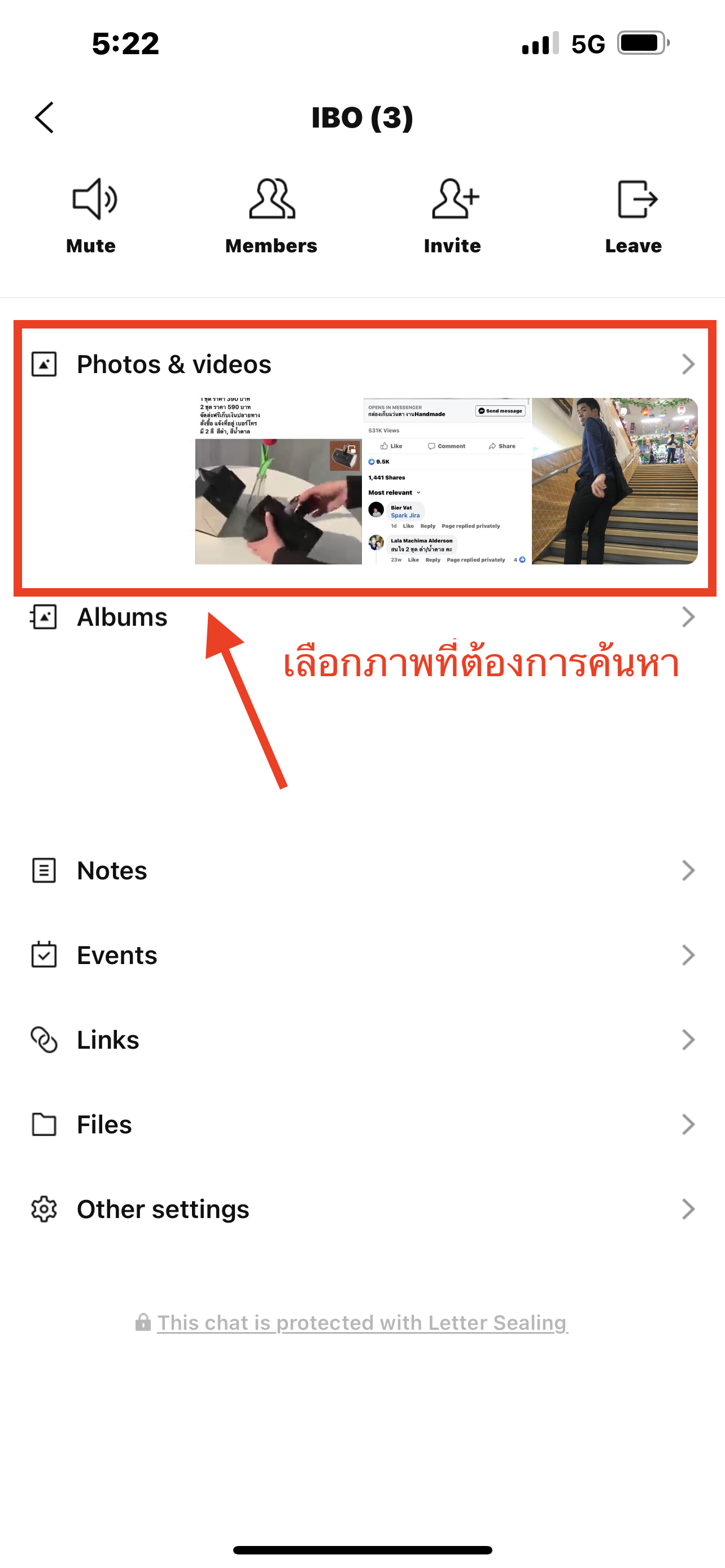 ก่อนอื่นกดเลือกที่ปุ่ม “สามขีด” > เลือกดูที่ Photos & Videos ที่เคยส่งกันในแชท > จากตรงนี้ให้เราเลือกภาพที่เราต้องการหาแชทในช่วงเวลานั้นได้เลยว่าอยากได้ภาพไหน