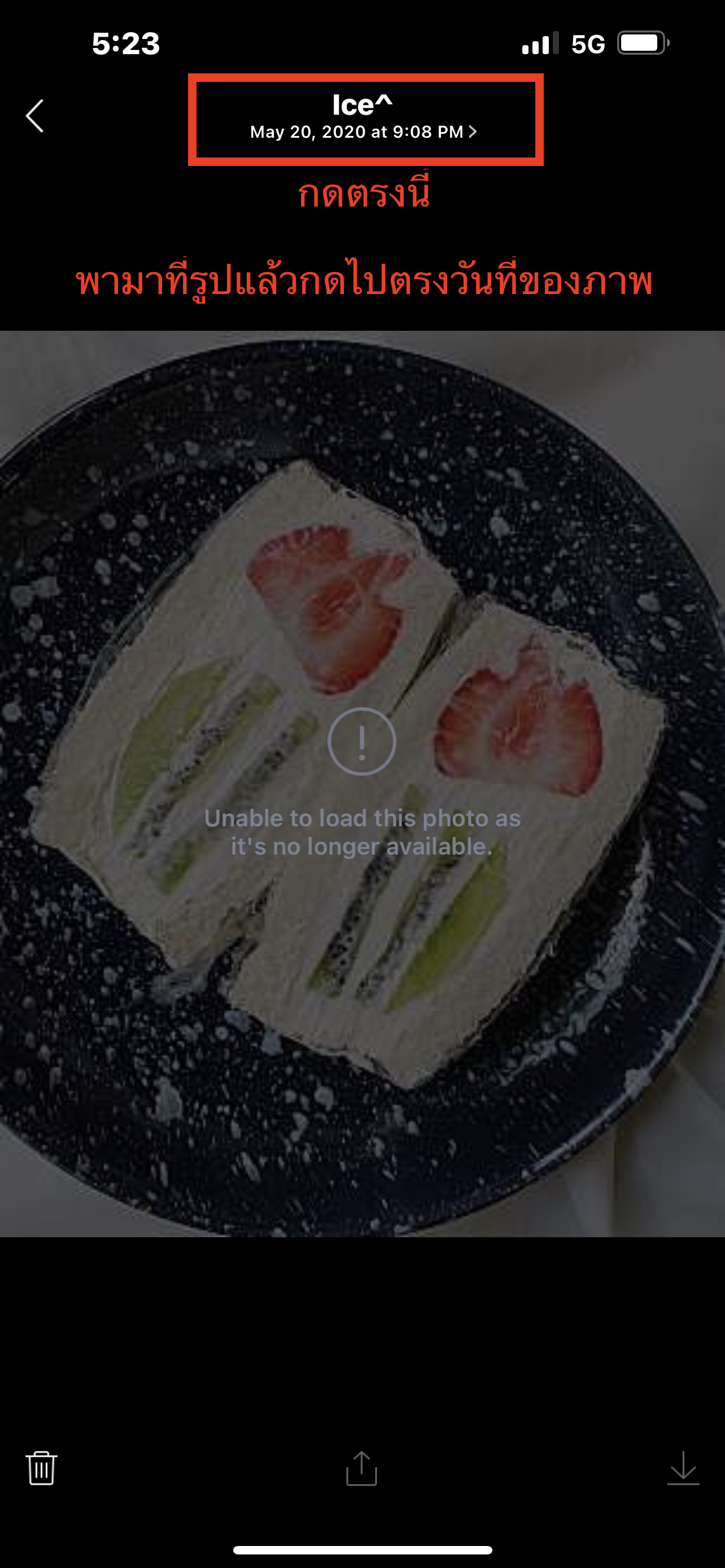 เมื่อเปิดรูปขึ้นมาแล้วให้เรากดไปยังวันที่ตัวเล็กๆด้านบนที่ใช้ส่งรูปนี้ได้เลย > LINE จะพาเราไปยังแชทตอนที่มาการส่งรูปภาพนี้กันทันที
