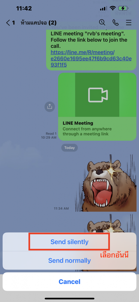 2. Send silently ส่งข้อความแบบเงียบๆ 🤫 ไม่แจ้งเตือน