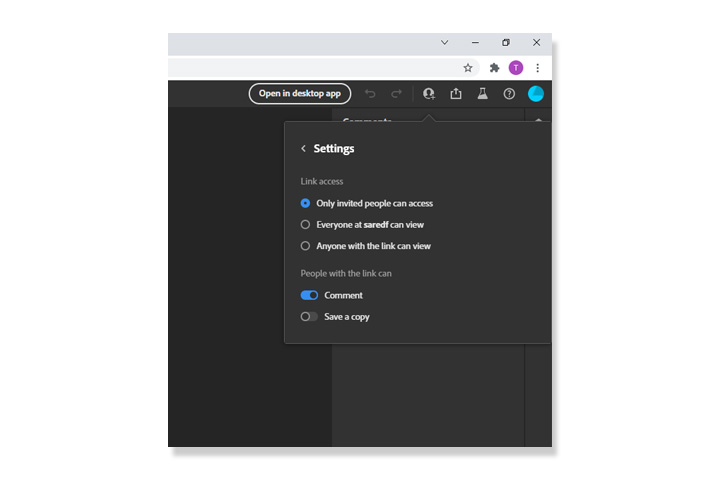 – สามารถให้สิทธิ์การคอมเมนต์และเซฟก๊อบปี้ของไฟล์ได้จากเมนู “Settings” ที่เป็นสัญลักษณ์ฟันเฟือง - ส่วนการให้สิทธิ์คนอื่นในการแก้ไขไฟล์ ให้กรอกอีเมลของคนคนนั้นลงในช่อง “Invite people to edit”