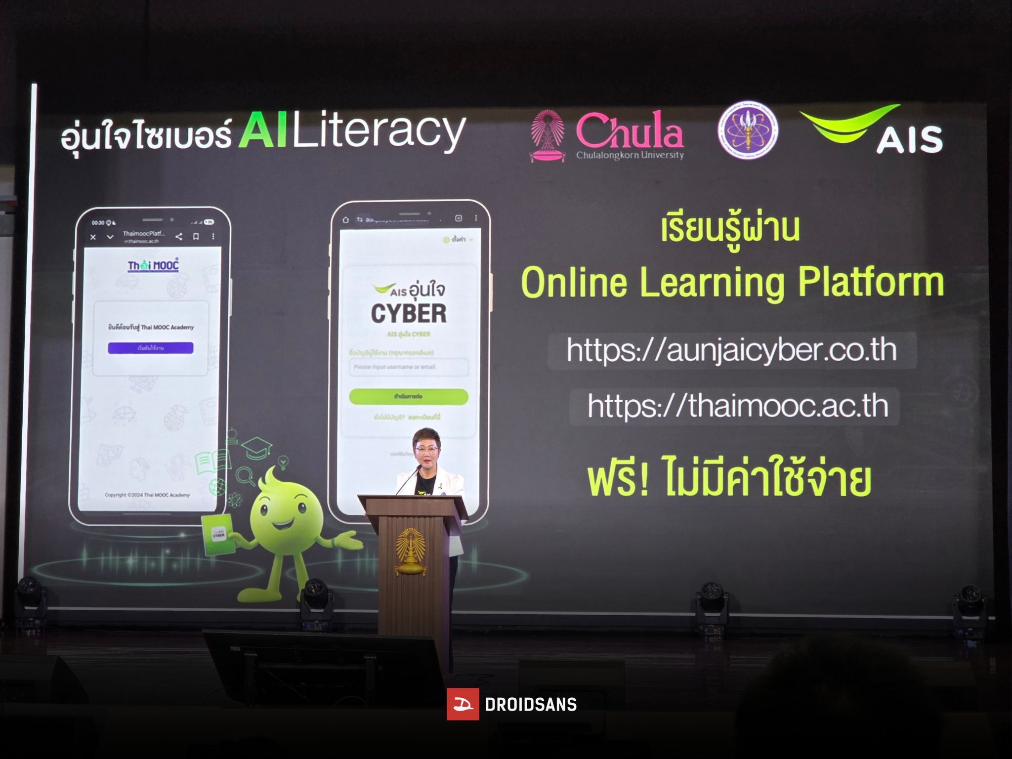 AIS ผนึกกำลังร่วมกับ อว. และจุฬาลงกรณ์มหาวิทยาลัย เปิดตัวคอร์สเรียนสำหรับคนไทย “อุ่นใจไซเบอร์ : AI Literacy” เพื่อเสริมความรู้และทักษะการใช้ AI ซึ่งออกแบบหลักสูตรโดยผู้เชี่ยวชาญด้าน AI จากหลากหลายสาขา เรียนได้ฟรี ทุกที่ทุกเวลา ผ่านแพลตฟอร์ม Thai MOOC และแอปพลิเคชัน ‘อุ่นใจ CYBER’