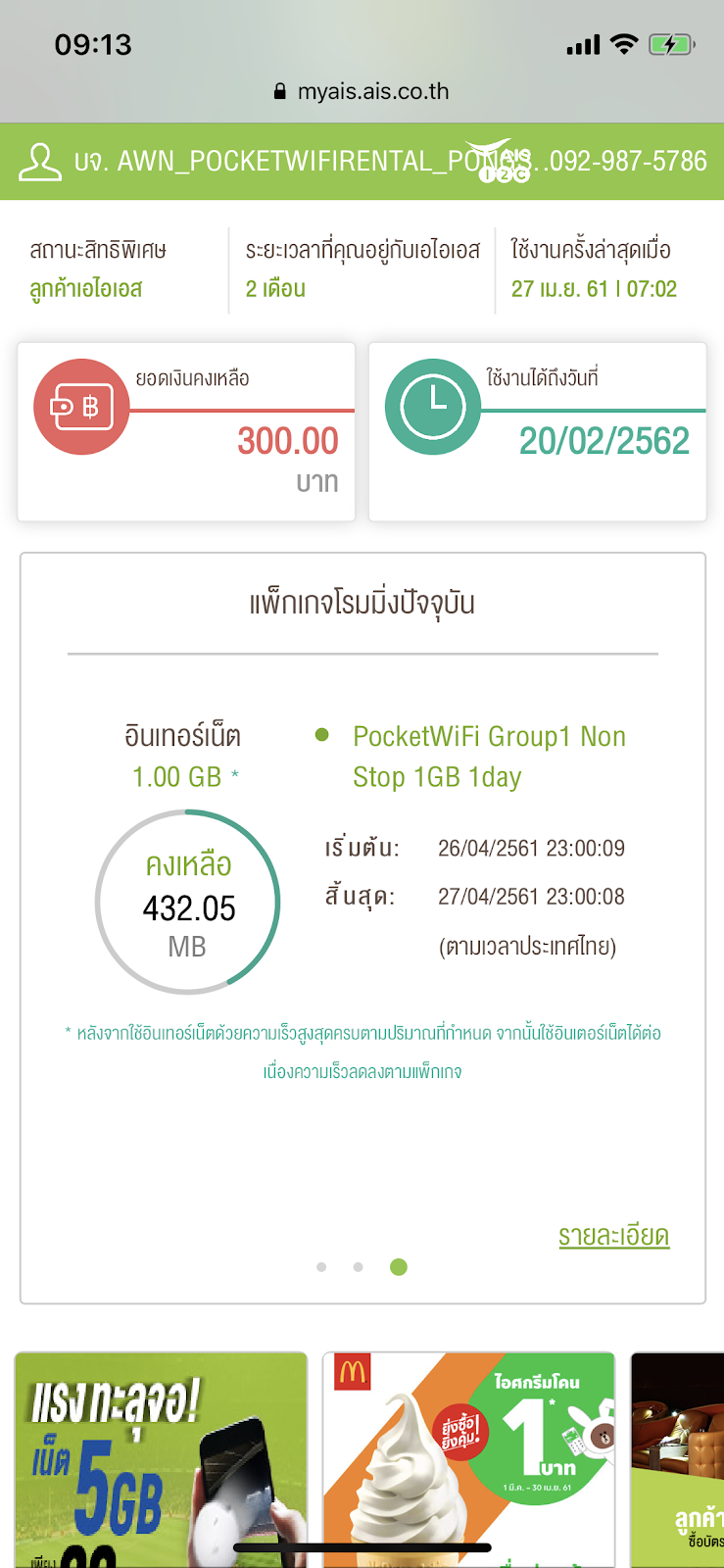 ข้อมูลเพิ่มเติมเกี่ยวกับ บริการเช่า AIS Pocket WiFi
