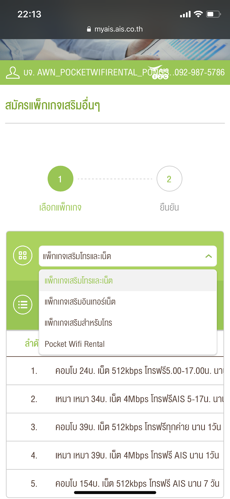 ขั้นตอนการกดเติมเงินและสมัครดาต้าเพิ่มของ AIS Pocket WiFi ผ่านหน้าเว็บ