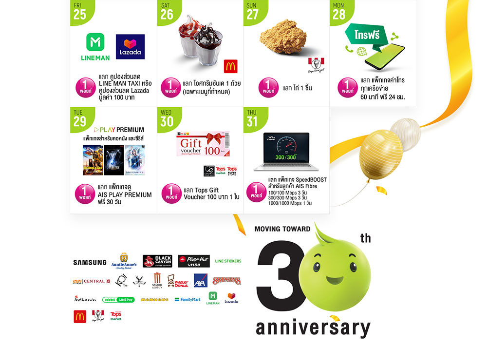 ถ้าใครที่ใช้ AIS จะรู้ว่าก่อนหน้านี้กว่าจะได้ Point มาแต่ละพอยท์หรือเอาไปแลกของแต่ละอย่างนั้นยากมากๆ ซึ่งในเดือนตุลาคม 2019 ทาง AIS ได้ฉลองก้าวสู่ปีที่ 30 พร้อมปรับโปรใหม่มอบของขวัญสุดพิเศษ เพื่อขอบคุณลูกค้าทั่วประเทศ แบบไม่เคยมีมาก่อน แลกง่าย คุ้มค่า ถูกใจยิ่งกว่า ใช้แค่แต้มเดียวก็แลกของรางวัลเจ๋งๆ ได้ไม่ซ้ำวันกันเลยทีเดียว พร้อมมีแจกพอยต์ฟรีด้วยจะวิธีการและของรางวัลมีอะไรบ้างไปดูกันเลยครับ