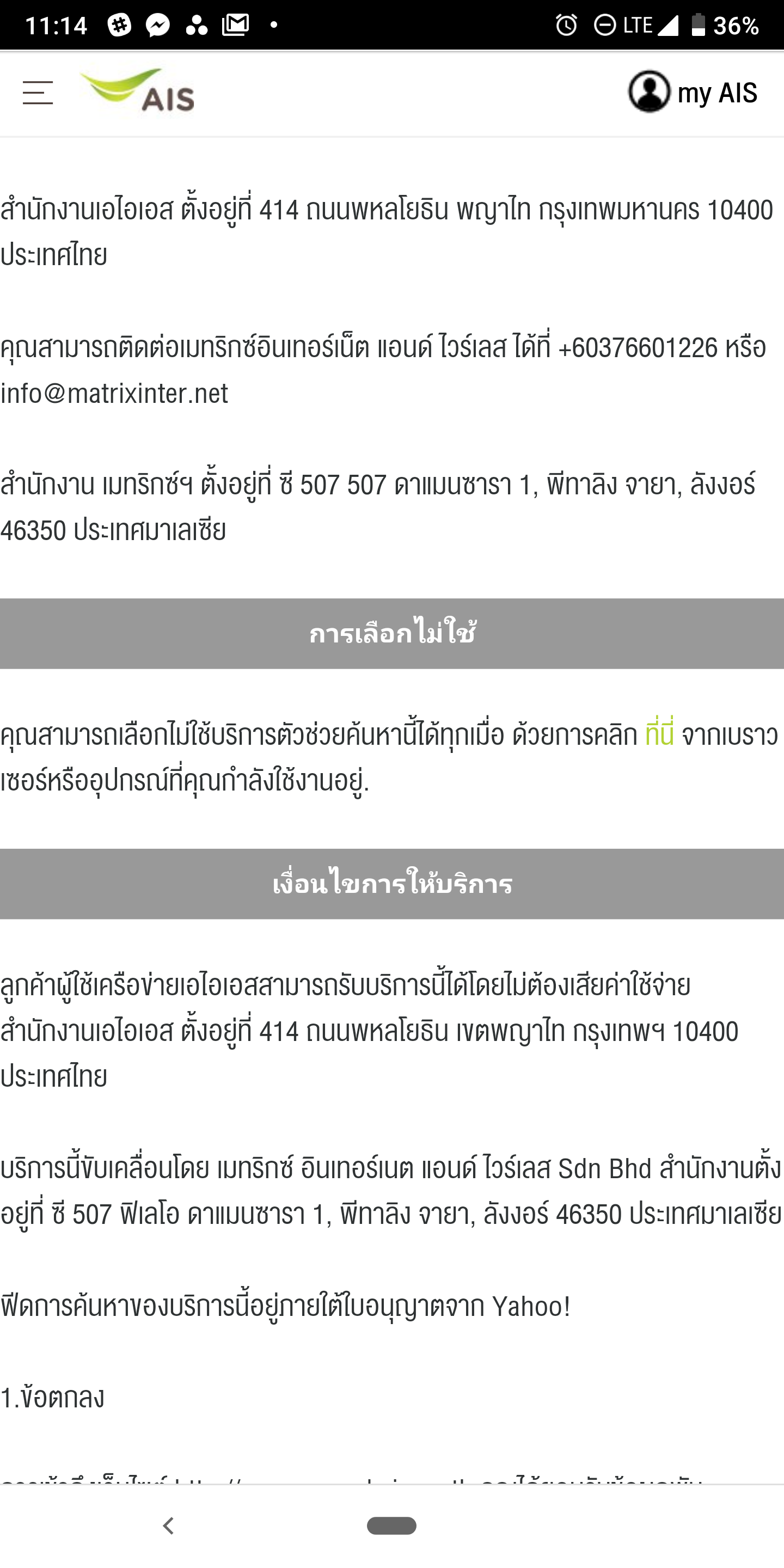 สำหรับผู้ใช้งานเอไอเอสในช่วงนี้ ถ้าเกิดพิมพ์ URL ผิดขึ้นมาน่าจะได้เห็นฟีเจอร์ใหม่นี้กันบ้างแล้ว โดยทางเอไอเอสได้ปรับการแสดงผลหน้า error จากปกติแจ้งไม่มี domain ที่ค้นหาอยู่ เป็นการ re-direct ไปยังหน้า myAIS เพื่อแจ้ง error แทนพร้อมแนะนำลิงก์อื่นๆมาให้ด้วย โดยใช้ผลการค้นหาดังกล่าวมาจากทาง Yahoo!