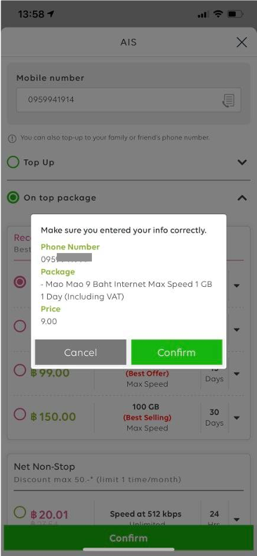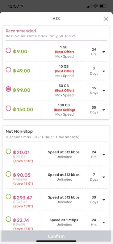 - ราคา / ปริมาณเน็ต / ระยะเวลาที่ใช้ได้