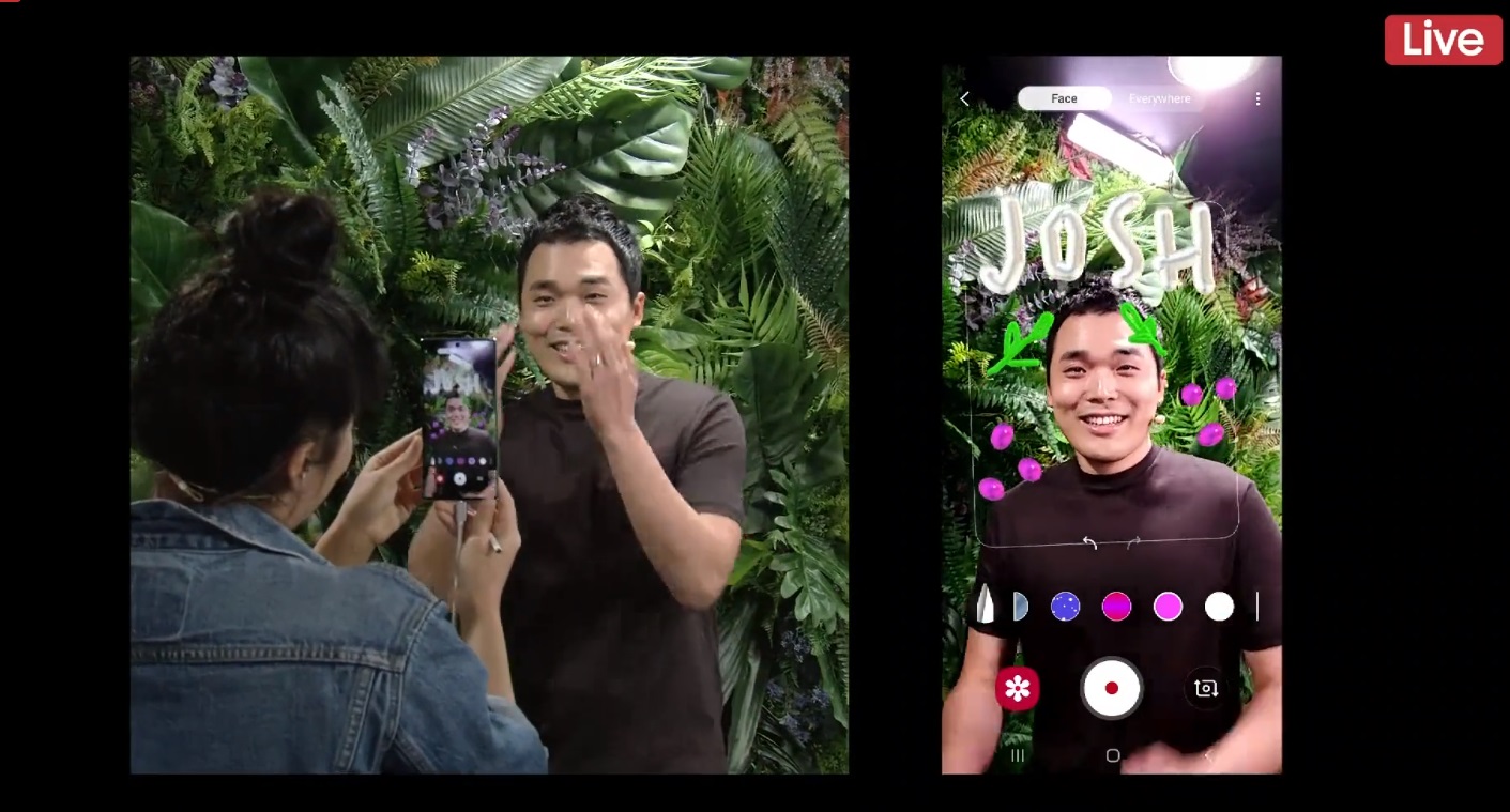 - มี AR Doodle ใช้วาดรูปวาดสติ๊กเกอร์บนวิดีโอได้ทันที พร้อมติดแท็คไปกับวัตถุนั้นได้ ทั้งบนใบหน้า หรือวิวสถานที่
