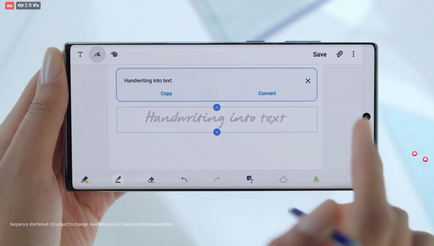 - สามารถเปลี่ยนลายมือตัวเขียนบนหน้าจอเป็นตัวพิมพ์ได้ทันที ใช้ได้ทั้งภาษาไทยและอังกฤษ โดยไม่ต้องเขียนที่ขอบล่าง