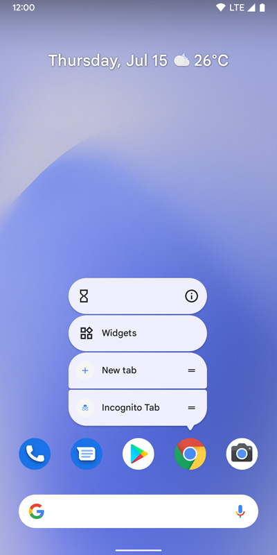 หลังจากอัปเดตเป็น Android 12 Beta 3 แล้วบูตเครื่องใหม่ เราสามารถเห็นการเปลี่ยนแปลงได้ทันทีตั้งแต่หน้าจอโฮม คือ วิดเจ็ตแถบค้นหาของ Google มีความหนามากขึ้น เปลี่ยนจากพื้นหลังโปร่งแสงเป็นสีขาวทึบ และแทนที่ไอคอน Assistant ด้วยไมโครโฟน นอกจากนี้ เมื่อเราแตะค้างไปที่ไอคอนจะเห็นได้ว่า เมนูทางลัดย่อยที่โผล่ขึ้นมามีการเปลี่ยนดีไซน์เล็กน้อยด้วยเช่นกัน แต่เหมือนจะยังทำไม่เสร็จดี เลยดูแปลก ๆ อยู่บ้าง