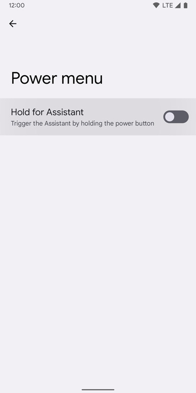 การตั้งค่าในส่วนของ Power menu เพื่อกำหนดให้ปุ่มเพาเวอร์ทำหน้าที่เป็นปุ่มปกติหรือเป็นปุ่มสำหรับเรียก Assistant ถูกแยกออกมาเป็นรายการเดี่ยว ๆ แล้ว น่าจะเป็นเพราะมีหลายคนหาเมนูไม่เจอแล้วงง หาวิธีปิดเครื่องไม่เจอ