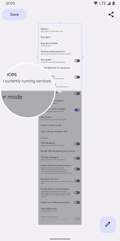 เมื่อเราแคปหน้าจอ นอกเหนือจากปุ่มแชร์และปุ่มแก้ไขแล้ว ตอนนี้จะมีคำสั่ง Capture more เพิ่มเข้ามาอีก 1 รายการ ซึ่งจะทำให้สามารถแคปหน้าจอแบบยาว ๆ ได้ในครั้งเดียว และในระหว่างที่เราแตะนิ้วลากกรอบเพื่อกำหนดขอบของภาพ ระบบจะแสดงภาพขยายเฉพาะส่วนให้ดูด้วย อันนี้ดีมาก เพราะตอนใช้ฟีเจอร์นี้ของยี่ห้ออื่น ๆ แล้วเล็งลำบากสุด ๆ