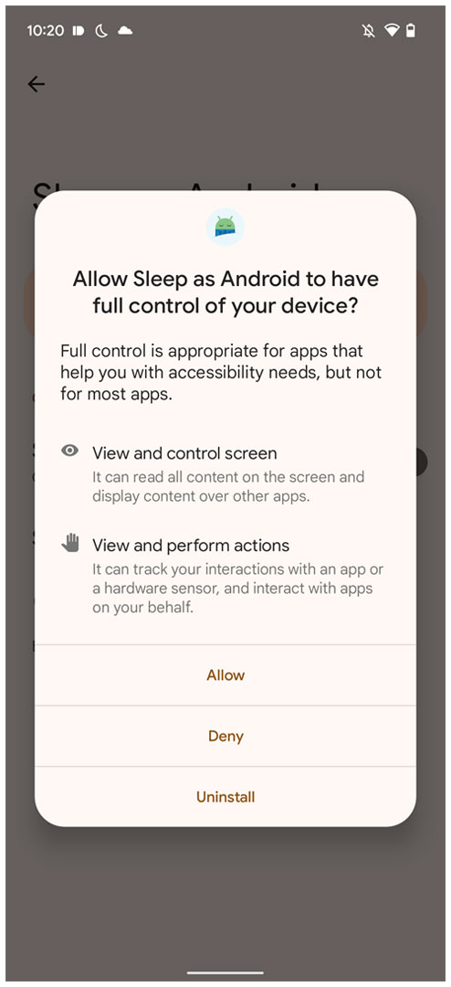 วิธีที่ Google กำลังจะทำใน Android 13 คือ ขึ้นป็อปอัปแจ้งเตือนทันทีเมื่อแอปที่ติดตั้งจากไฟล์ APK มีการขอสิทธิ์ Accessibility service และบล็อกไม่ให้ใช้งาน (ดังภาพด้านล่าง)