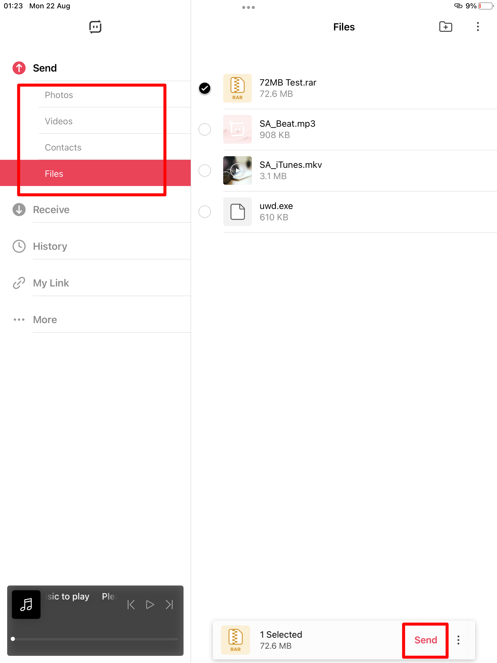 เวลาในการส่งก็จะขึ้นอยู่กับความเร็วอินเทอร์เน็ต เนื่องจากเป็นการส่งผ่าน Wi-Fi มีข้อดีคือวิ่งความเร็วเต็มไม่จำกัดอัตราการส่ง แถมวิธีนี้ส่งไฟล์ใหญ่ขนาดกี่ GB ก็ได้ (72MB ใช้เวลาไม่ถึง 10 วิ)