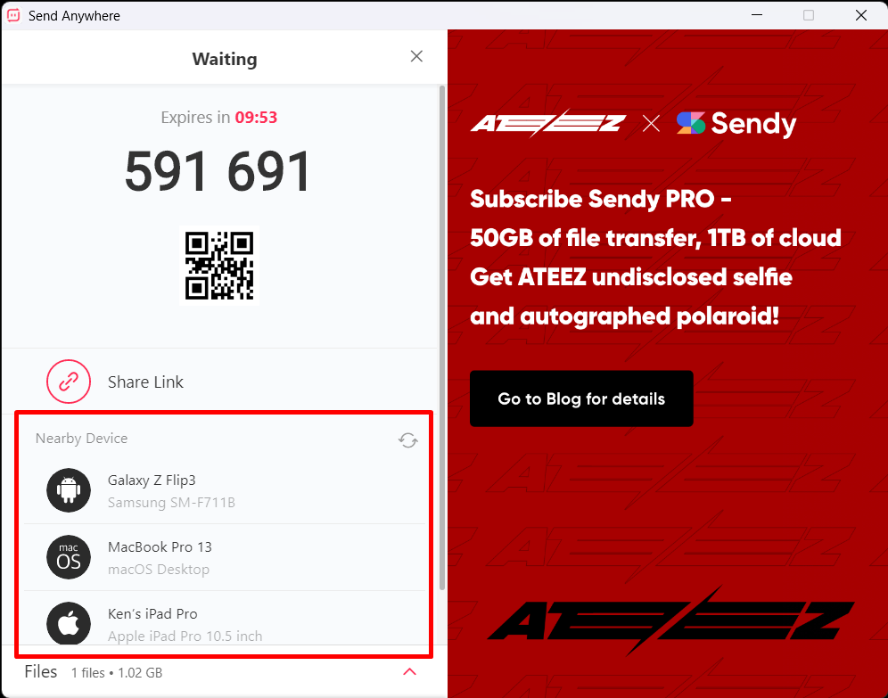 ข้อดีอีกอย่างคือแอปจะจำอุปกรณ์ที่เคยส่งหากันแล้วไว้ให้ ซึ่งเวลาส่งอีกรอบก็จะขึ้นเป็น Recent Device โชว์ให้เลือกเลยไม่ต้องกรอกรหัสซ้ำ (แต่ต้องอยู่ใกล้กัน) หรือถ้าตั้งค่าให้อุปกรณ์ใกล้กันค้นหากันเจอได้ก็จะขึ้นเป็น Nearby Device ให้เลือกหมดเลยทุกเครื่อง ซึ่งพอกดส่งปุ๊บแอปก็จะส่งเป็นแจ้งเตือนให้เครื่องปลายทางกดรับได้ทันที บอกเลยว่าสะดวกมากไม่แพ้ทั้ง AirDrop และ Nearby Share เลย