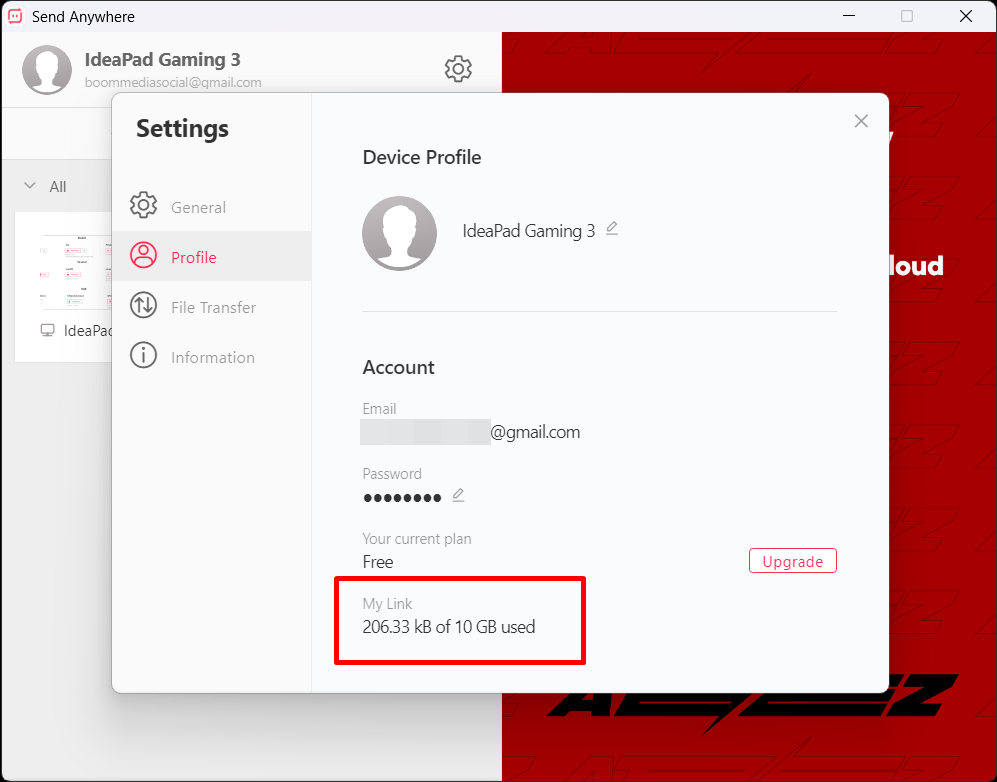 อีกหนึ่งฟีเจอร์ก็คือสามารถส่งแบบแปลงไฟล์เป็นลิงก์ก่อน แล้วส่งต่อให้คนอื่นโหลดทีหลังได้ โดยไฟล์จะโดนอัปโหลดเก็บไว้ให้บนคลาวน์ ซึ่งฟีเจอร์นี้จำเป็นต้องสมัครบัญชีก่อนถึงจะใช้ได้ (สมัครได้ฟรีผ่านแอป) สำหรับบัญชีธรรมดาจะมีพื้นที่คลาวน์ให้ฟรีคนละ 10GB สามารถอัปโหลดได้ไม่จำกัดจำนวนลิงก์ ส่งต่อกี่รอบก็ได้ แต่ต้องมีขนาดรวมกันไม่เกินโควตาที่เหลืออยู่