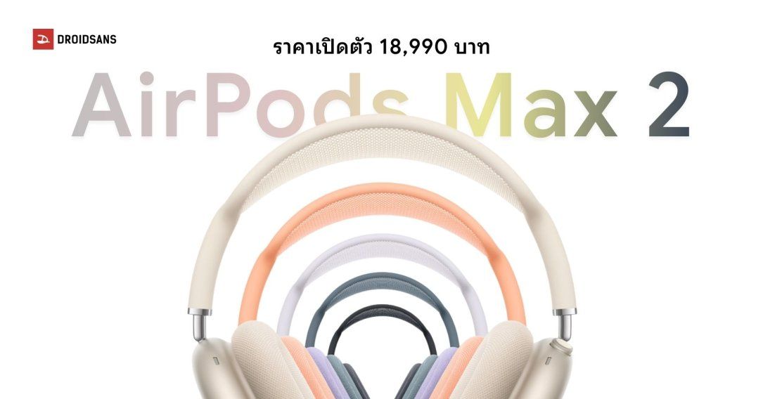 AirPods Max 2 เปิดราคาไทยมาที่ 18,990 บาท โดยจะพร้อมวางจำหน่ายในประเทศไทยเร็ว ๆ นี้ ผ่านหน้าเว็บไซต์หรือหน้าช็อป Apple Store