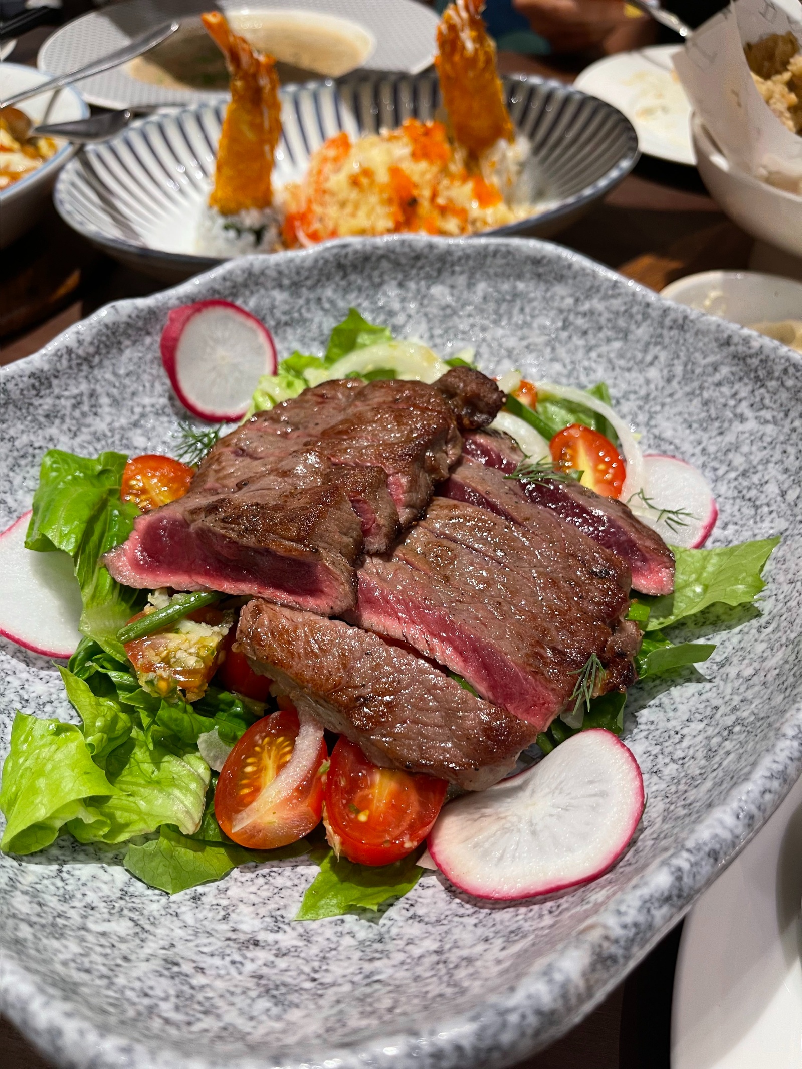 แต่พอขยับออกมาให้กล้องได้เห็นมุมกว้าง ถ่ายคนและอาหาร ก็จะเริ่มเห็นความแตกต่าง สังเกตได้ว่ากล้องในรุ่น iPhone 12 และ Xs Max จะเบนความสนใจไปให้ตัวบุคคลและปล่อยเบลออาหารบนโต๊ะไป ส่วน 14 และ 13 จับโฟกัสได้ชัดทั้งภาพ โดย 14 มีรายละเอียดภาพมากที่สุด