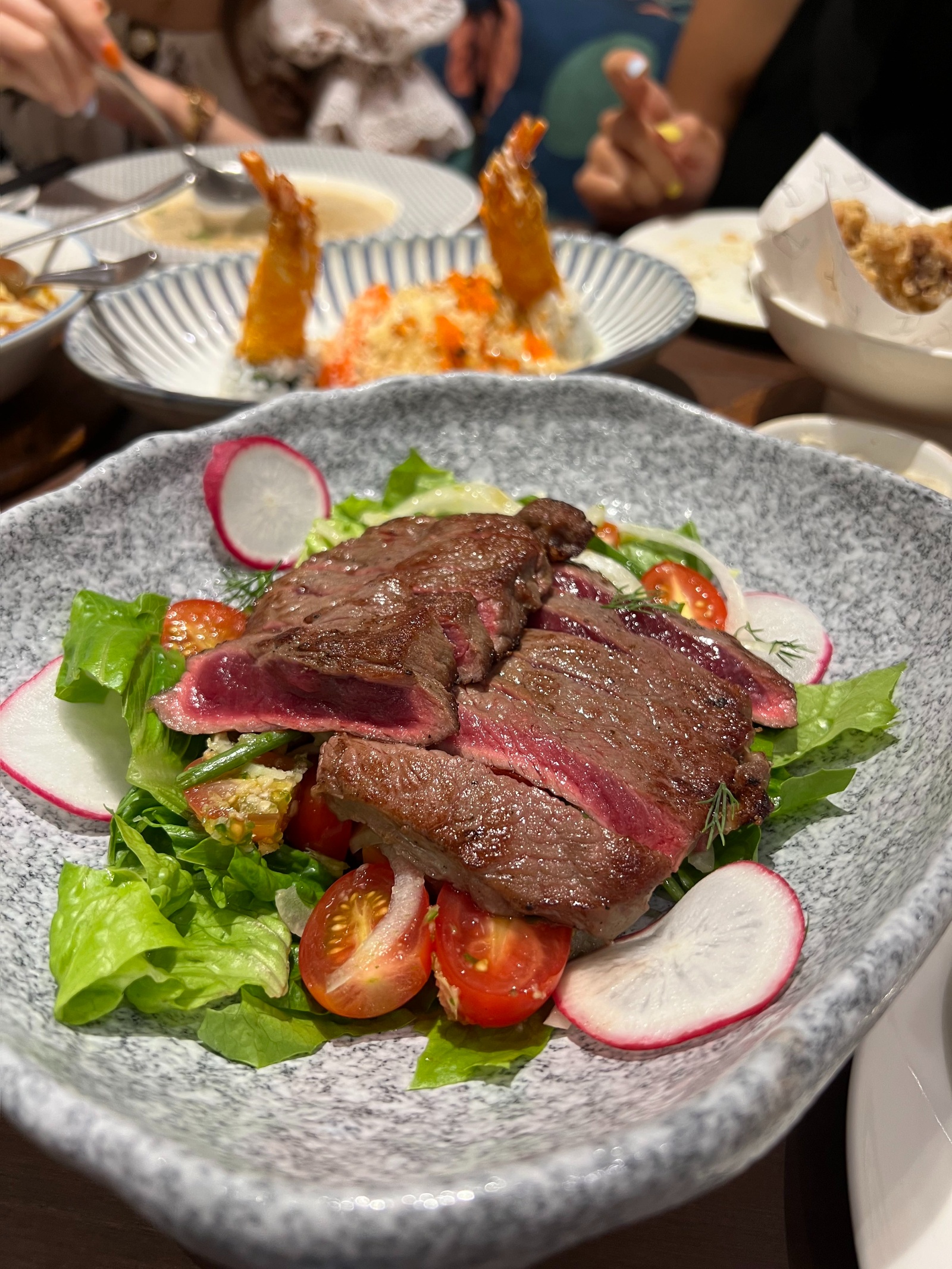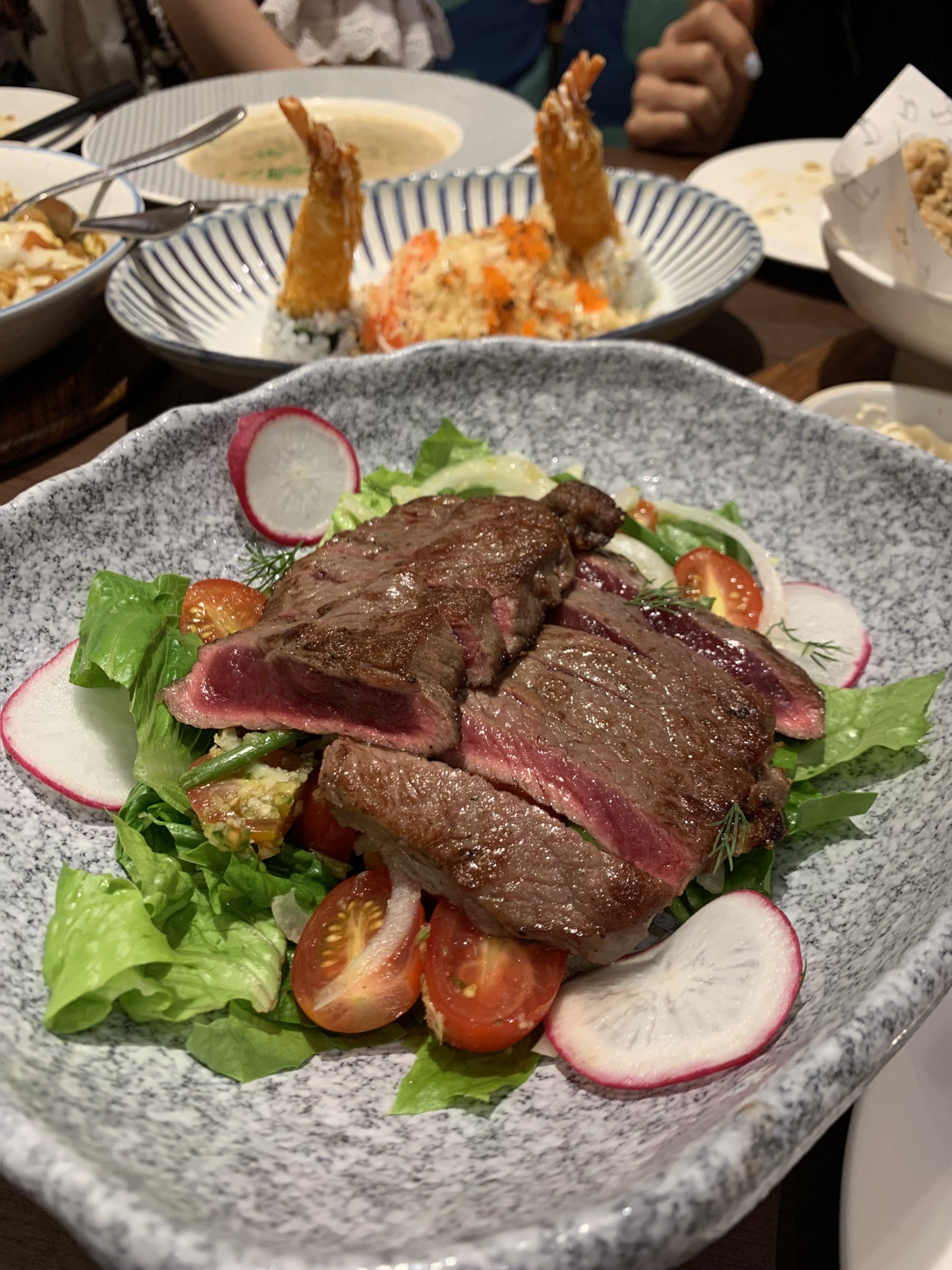แต่พอขยับออกมาให้กล้องได้เห็นมุมกว้าง ถ่ายคนและอาหาร ก็จะเริ่มเห็นความแตกต่าง สังเกตได้ว่ากล้องในรุ่น iPhone 12 และ Xs Max จะเบนความสนใจไปให้ตัวบุคคลและปล่อยเบลออาหารบนโต๊ะไป ส่วน 14 และ 13 จับโฟกัสได้ชัดทั้งภาพ โดย 14 มีรายละเอียดภาพมากที่สุด