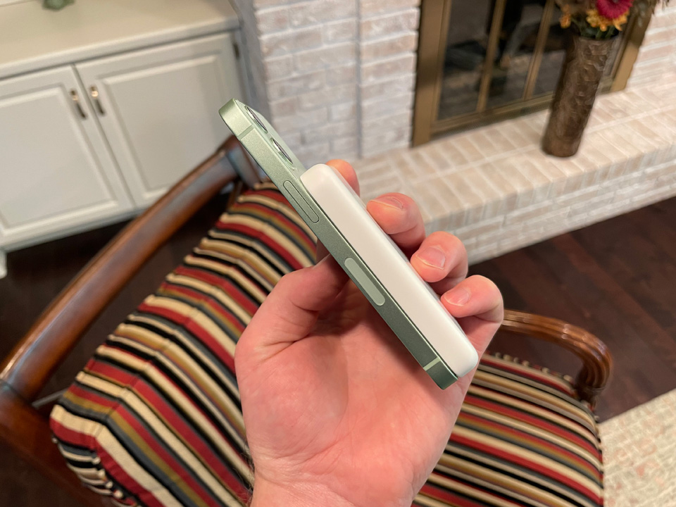 ควินน์ เนลสัน (Quinn Nelson) ยูทูบเบอร์เจ้าของช่อง Snazzy Labs ได้เผยแพร่ภาพ MagSafe Battery Pack ผ่านบัญชีทวิตเตอร์ให้แฟน ๆ ได้ชมกัน พร้อมทั้งบอกว่า อุปกรณ์ชิ้นนี้ดูโอเค เมื่อประกบเข้ากับ iPhone 12 Pro ของภรรยาที่ใส่เคสเอาไว้อยู่ แต่มันดูแย่มากเมื่อนำมาใช้งานกับ iPhone 12 mini ที่ไม่มีเคส นอกจากขนาดจะใหญ่เมื่อเทียบกับโทรศัพท์แล้ว ยังเลื่อนหลุดง่ายอีกต่างหาก
