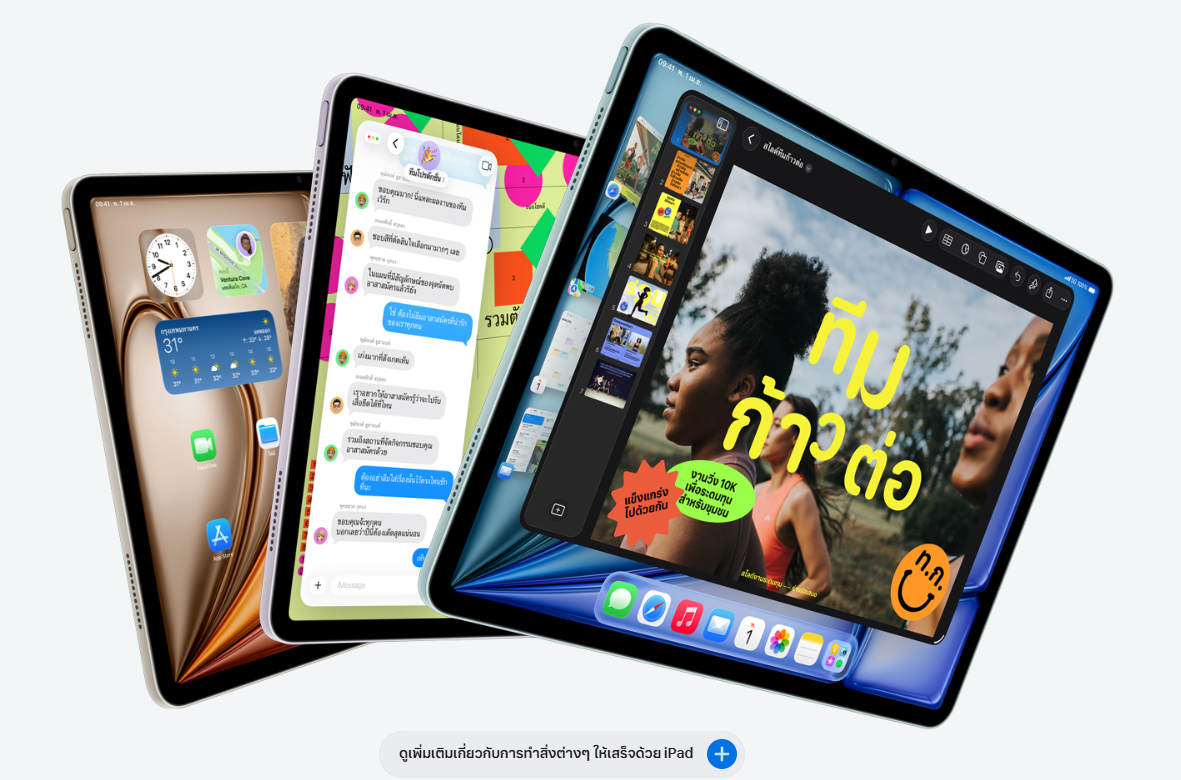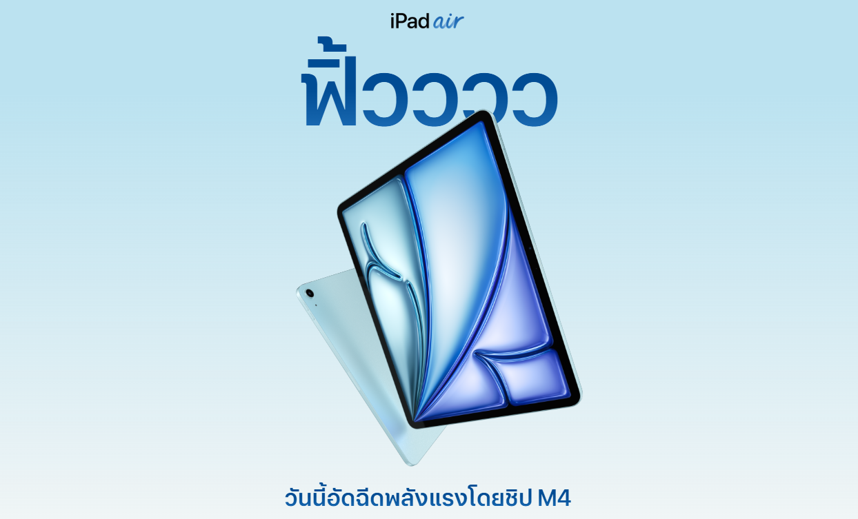 Apple เปิดตัว iPad Air 8 หรือ iPad Air รุ่นชิป M4 ที่ได้รับการอัปเกรดชิปประมวลผลจาก Apple M3 ให้เร็วขึ้นกว่าเดิม และเพิ่มขนาด RAM ที่มากขึ้นกว่ารุ่นที่แล้ว ในราคาเริ่มต้นเท่าเดิม 21,900 บาท