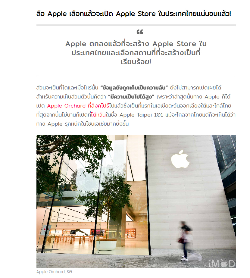 ทางเราเองก็อยากทราบเหมือนกันครับว่าข่าวการสร้าง Apple Store ในไทยนั้นเป็นความจริงหรือเปล่า เพราะถ้าหากเป็นข้อมูลที่ถูกต้อง เราก็พร้อมจะเผยแพร่ให้เพื่อนได้รับรู้ เพราะการมาเปิดร้านค้าโดยแอปเปิลเองนั้นจะส่งผลดีต่อผู้บริโภคแน่ๆ