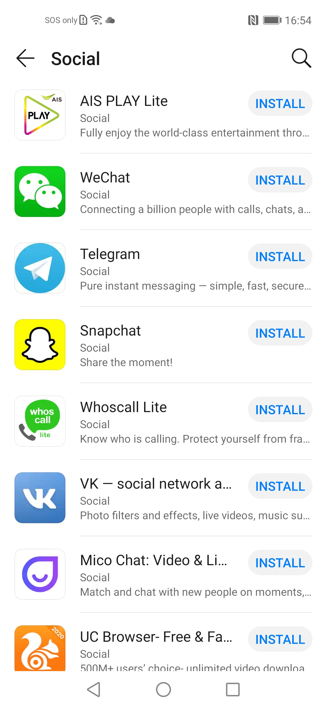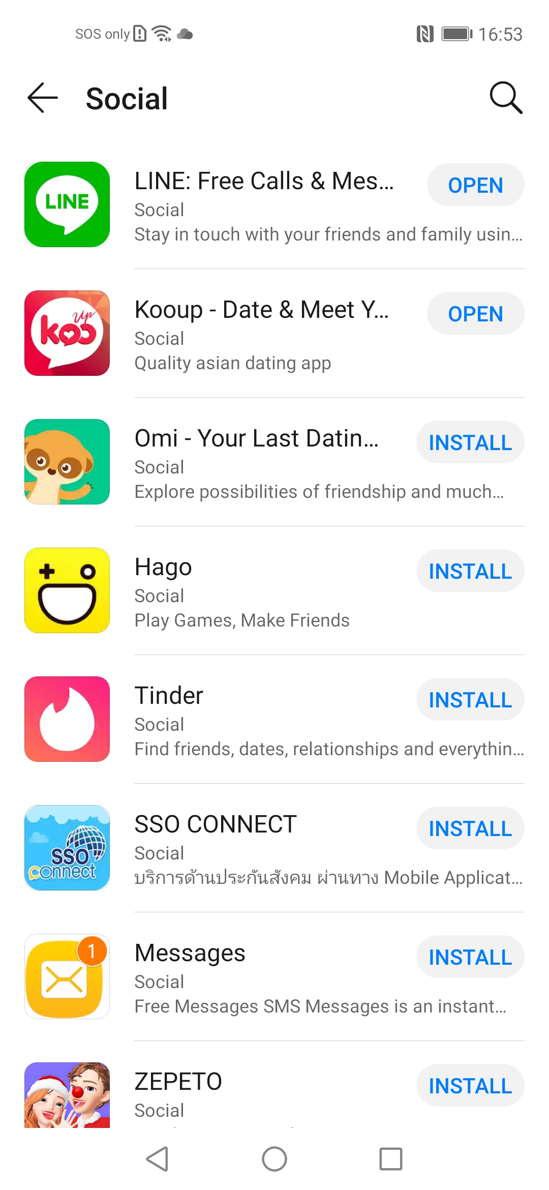 มาเริ่มต้นกันด้วยดูแอปโซเชียลใน AppGallery กันก่อน ที่ฮิตๆ ก็จะมี LINE, Snapchat, Telegram และ WeChat ร่วมถึงแอปหาคู่ดัง ๆ อย่าง Tinder, Kooup และ Omi ก็มีมาให้โหลดมาเล่นเช่นกัน ส่วนใครที่ต้องการจะเล่น Facebook, Instagram, Twitter และ WhatsApp ก็ต้องขอแสดงความเสียใจด้วย เพราะตอนนี้ยังไม่มีใน AppGallery แต่ถ้าใครอยากใช้งานจริงๆ ก็ต้องไปแสดงหาดาวน์โหลดจากแหล่งอื่นภายนอกกันเอาเอง