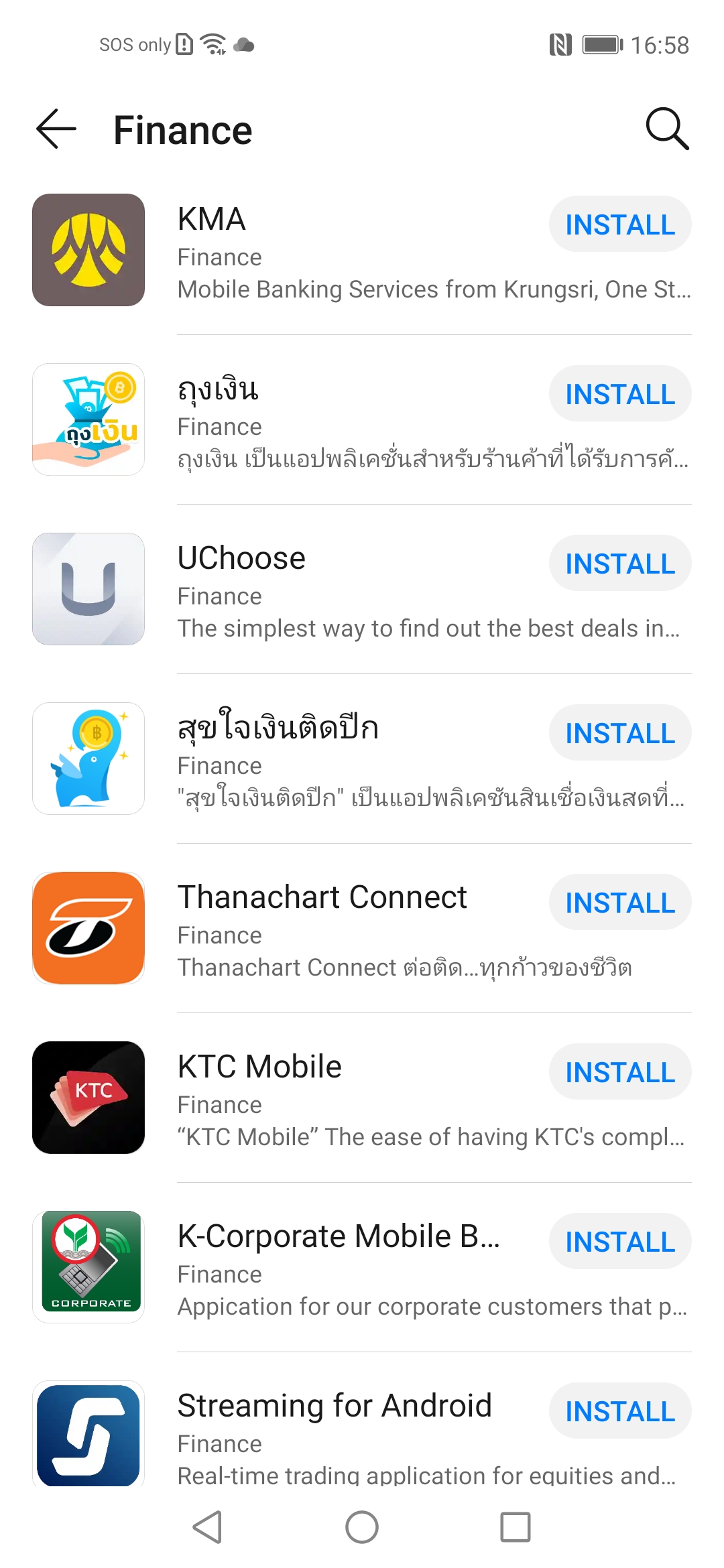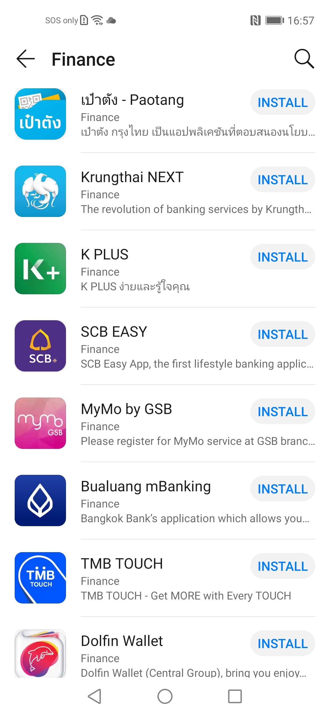 ในส่วนของแอปธนาคารทาง AppGallery ถือว่าแทบจะไม่มีปัญหา เพราะแบงก์หลักในประเทศไทยมากันครบทุกไม่ว่าจะ SCB EASY (ไทยพาณิชย์), K PLUS (กสิกรไทย), Krungthai NEXT (กรุงไทย), MyMo by GSB (ออมสิน), KMA (กรุงศรี), TMB TOUCH (ทหารไทย), Thanachart Connect (ธนชาติ) รวมถึงแอป เป๋าตัง และถุงเงิน ของรัฐบาลที่ไว้ใช้สำหรับโครงการคนละครึ่งและเที่ยวด้วยกันก็สามารถใช้ได้เหมือนกัน