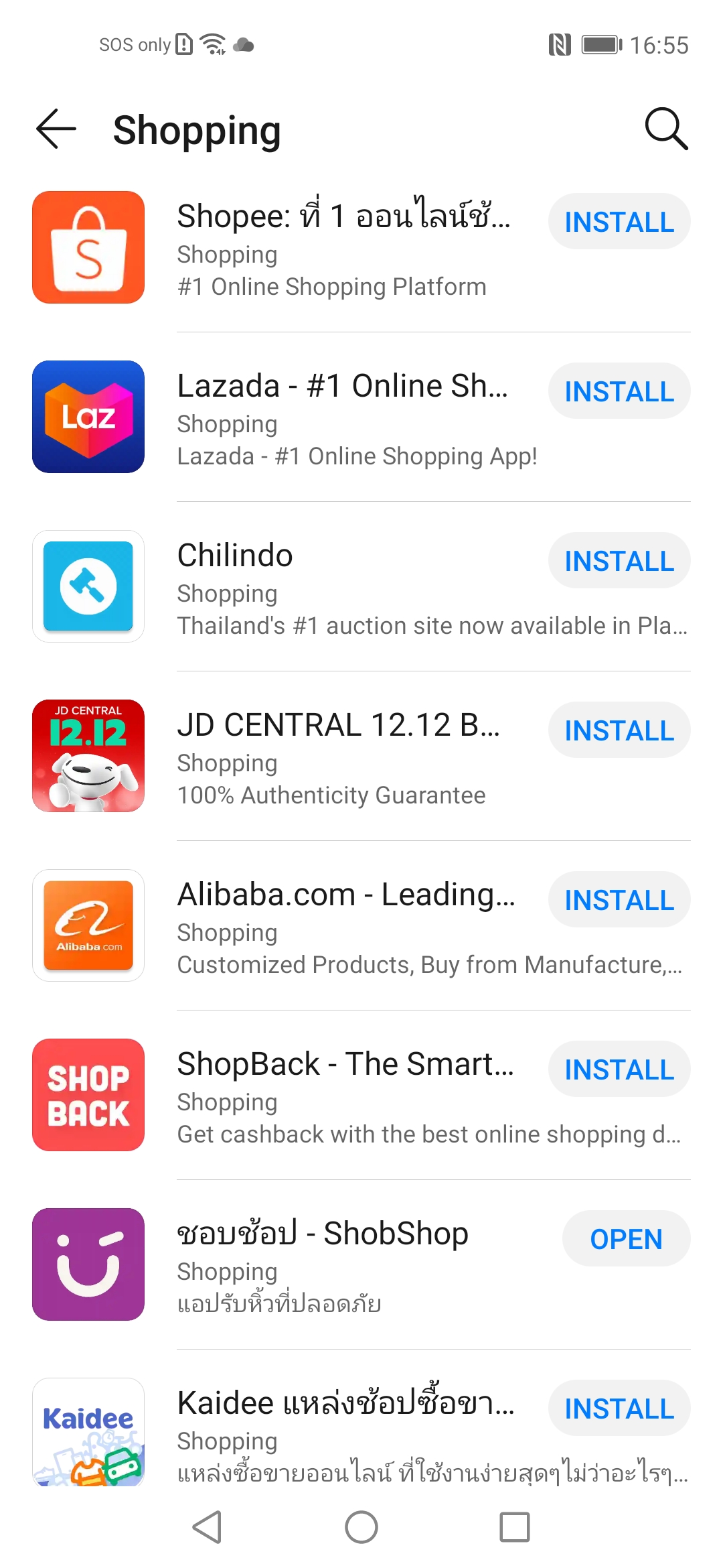 ใครที่เป็นสายช็อปก็หายห่วงได้เลย เพราะใน AppGallery มีแอปหลักให้มาครบทั้ง Lazada, Shopee และ JD Central รวมถึงแอปอื่น ๆ อย่าง Chilindo, Alibaba, Shopback, Kaidee, Tops, Watsons, Uniqlo และ Big C ก็มีมาให้เช่นกัน โดยรวมแล้วแถมไม่ต่างจาก Play Store บนมือถือ Android ปกติเลย