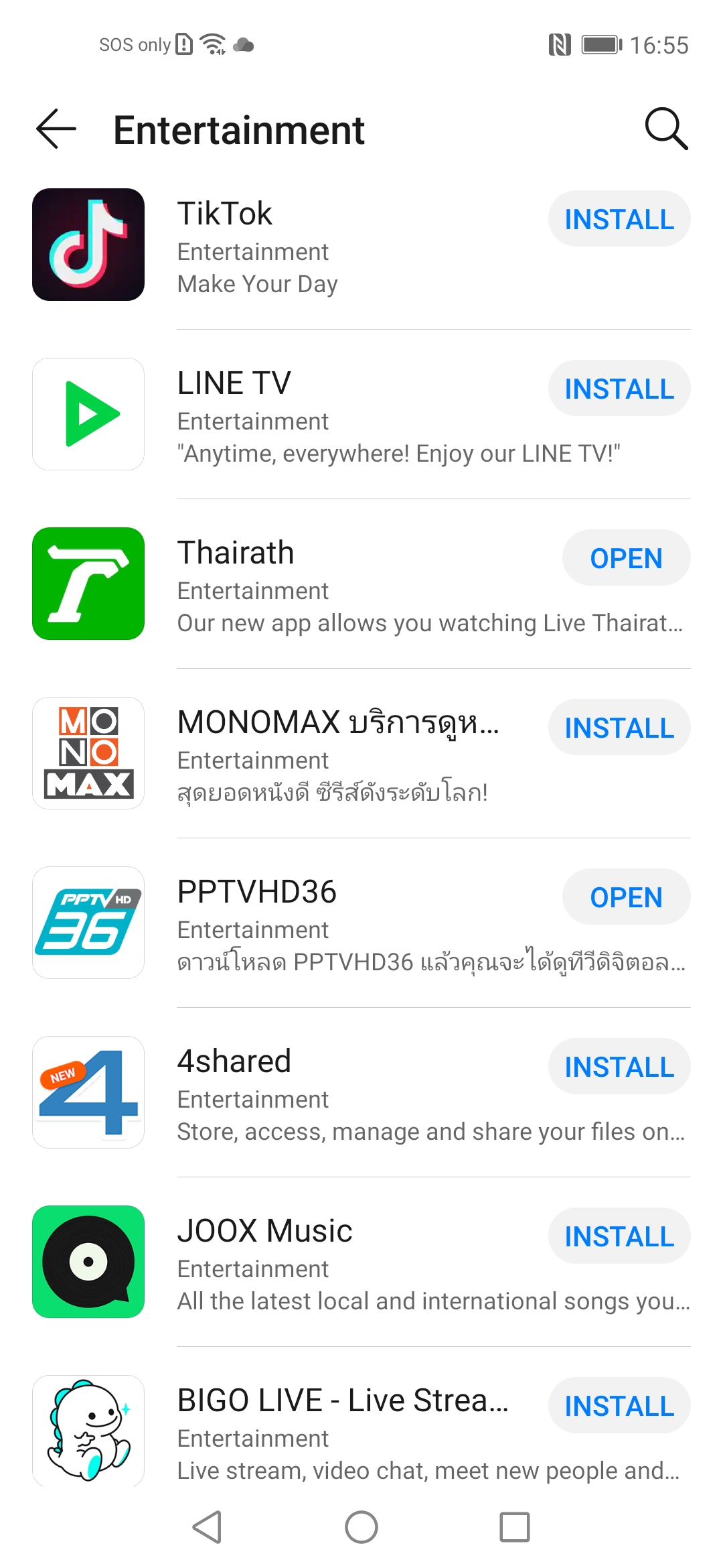 แต่อย่างไรก็ตามทาง AppGallery ก็ไม่ถึงกับไม่มีแอปอะไรให้ดูซะทีเดียวนะ เพราะยังมีแอป TikTok, Viu, LINE TV, MONOMAX, MONO 29, BUGABOO, Ch7HD, CH3 Plus ฯลฯ ให้ดูกันได้เพลินๆ อยู่ รวมถึงแอปฟังเพลงออนไลน์ยอดนิยมในตอนนี้ก็มีให้ใช้ JOOX Music และ TIDAL ฟังสบายๆ (ไม่มี Spotifly นะ)