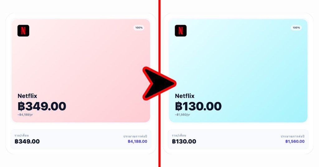 อย่าง Netflix ที่จ่ายเดือนละ 349 บาท ถ้าเราหาเพื่อนๆ ญาติๆ มาหารก็อาจเหลือราวๆ 130 บาท/เดือน ได้ ราคาเบาลงเยอะเลย
