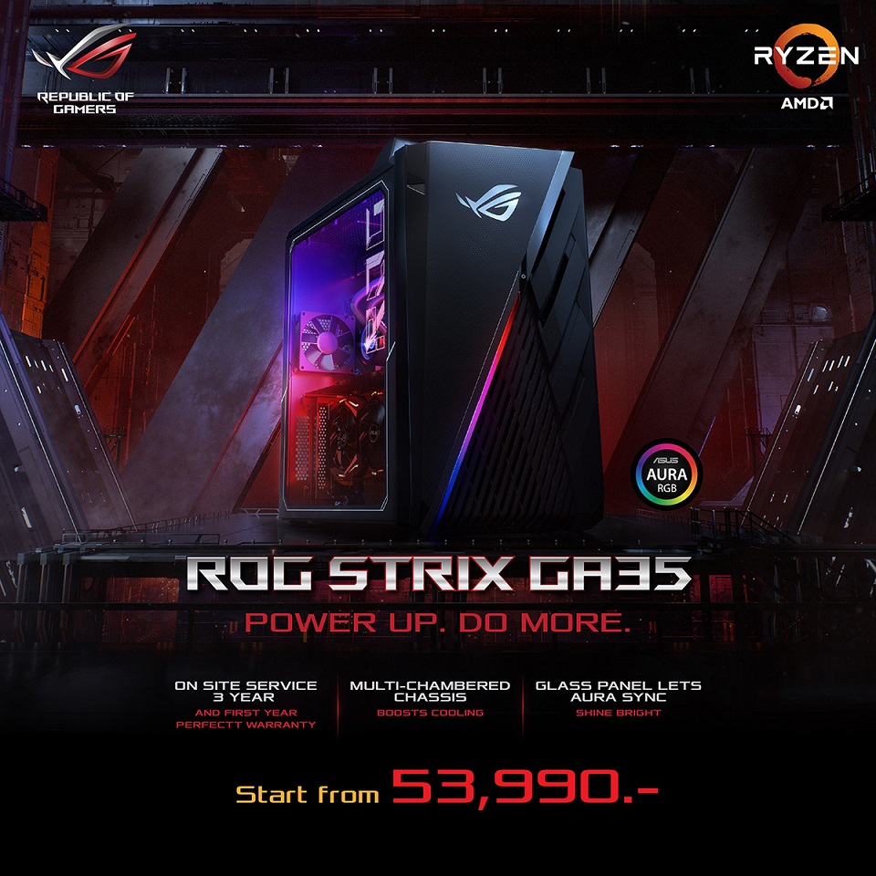 เพิ่มเติมคือนอกจากโน้ตบุ๊คแล้ว ASUS ก็ยังได้เปิดตัว PC คอมเซ็ตประกอบให้เสร็จสรรพกับ ROG STRIX GA15/ GA35 ที่มาพร้อมกับประกัน Onsite ถึง 3 ปี มีปัญหาซ่อมฟรีถึงบ้าน พร้อมมีประกันอุบัติเหตุให้ด้วย 1 ปีแรก ในราคาเริ่มต้นที่ 32,990 บาท