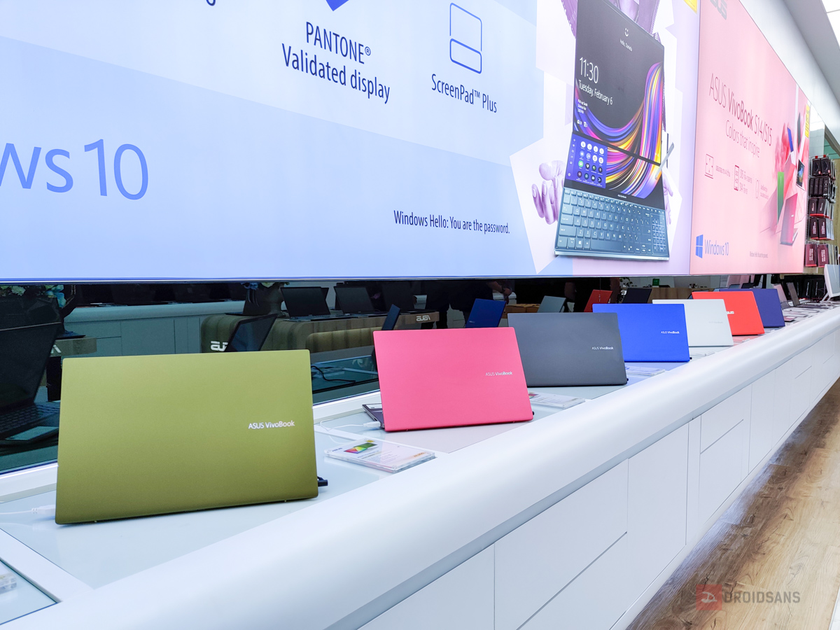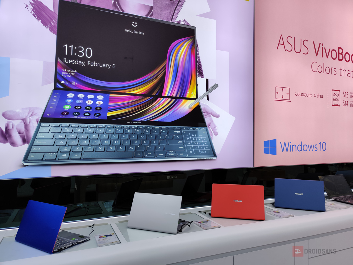 เดินมาทางฝั่งด้านซ้ายก็จะเป็นโน้ตบุ๊คสายทำงานที่มีให้เลือกดูทุกซีรีส์อีกแล้ว ตั้งแต่ VivoBook S14, S15 รุ่นเริ่มต้น ไปจนถึง ZenBook Pro Duo โน้ตบุ๊คระดับไฮเอนด์ตัวแรง ขวัญใจสาย Creator ก็มีมาให้ทดลองเล่นกันด้วย