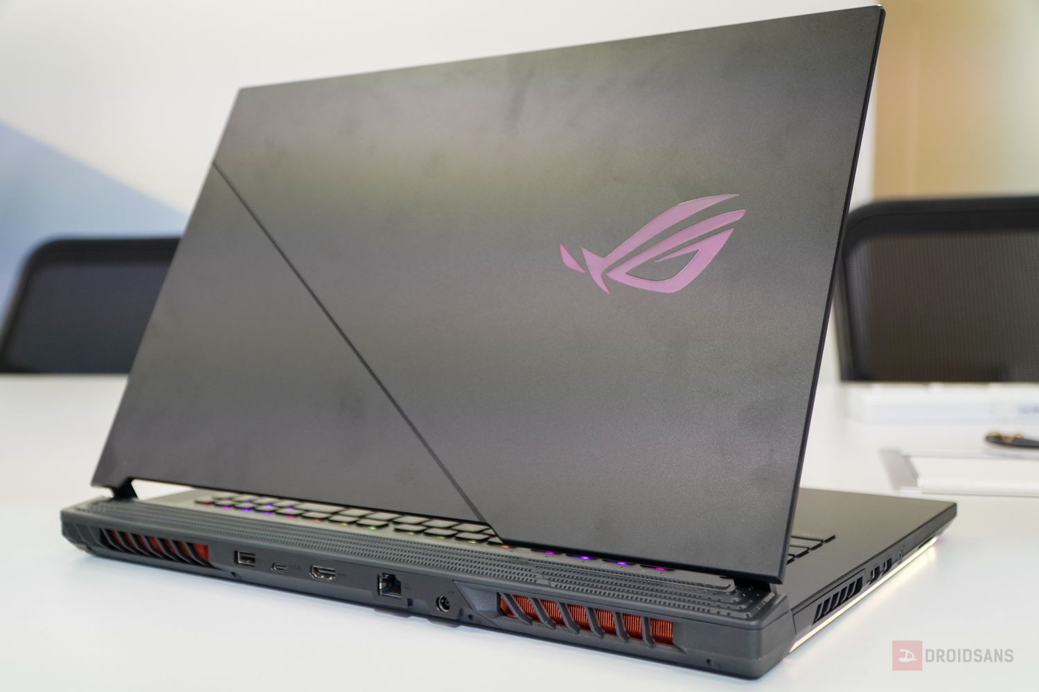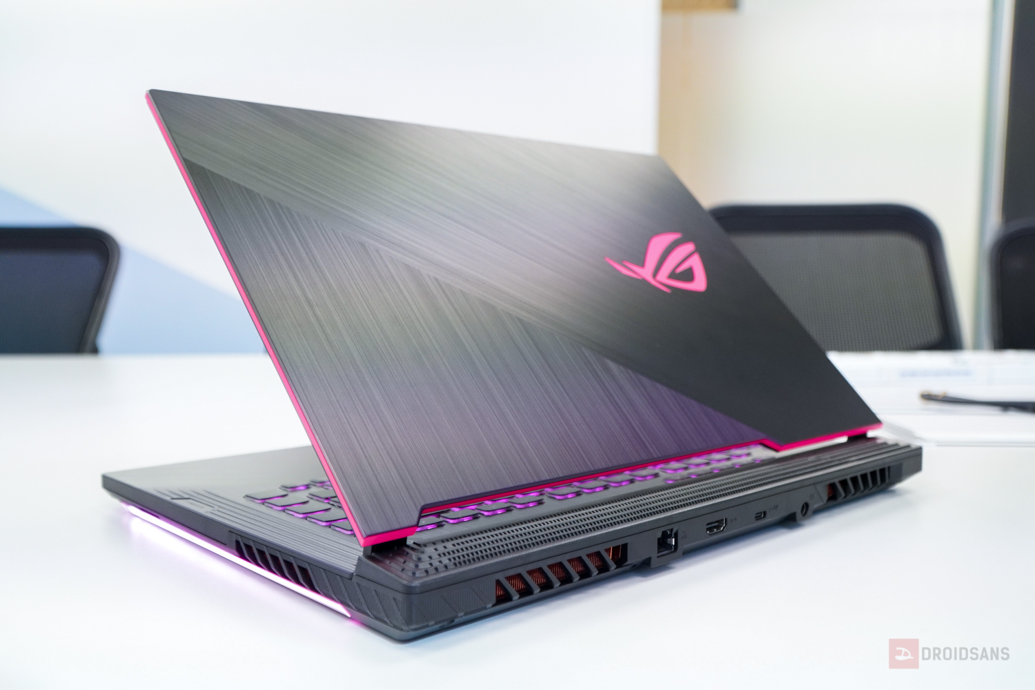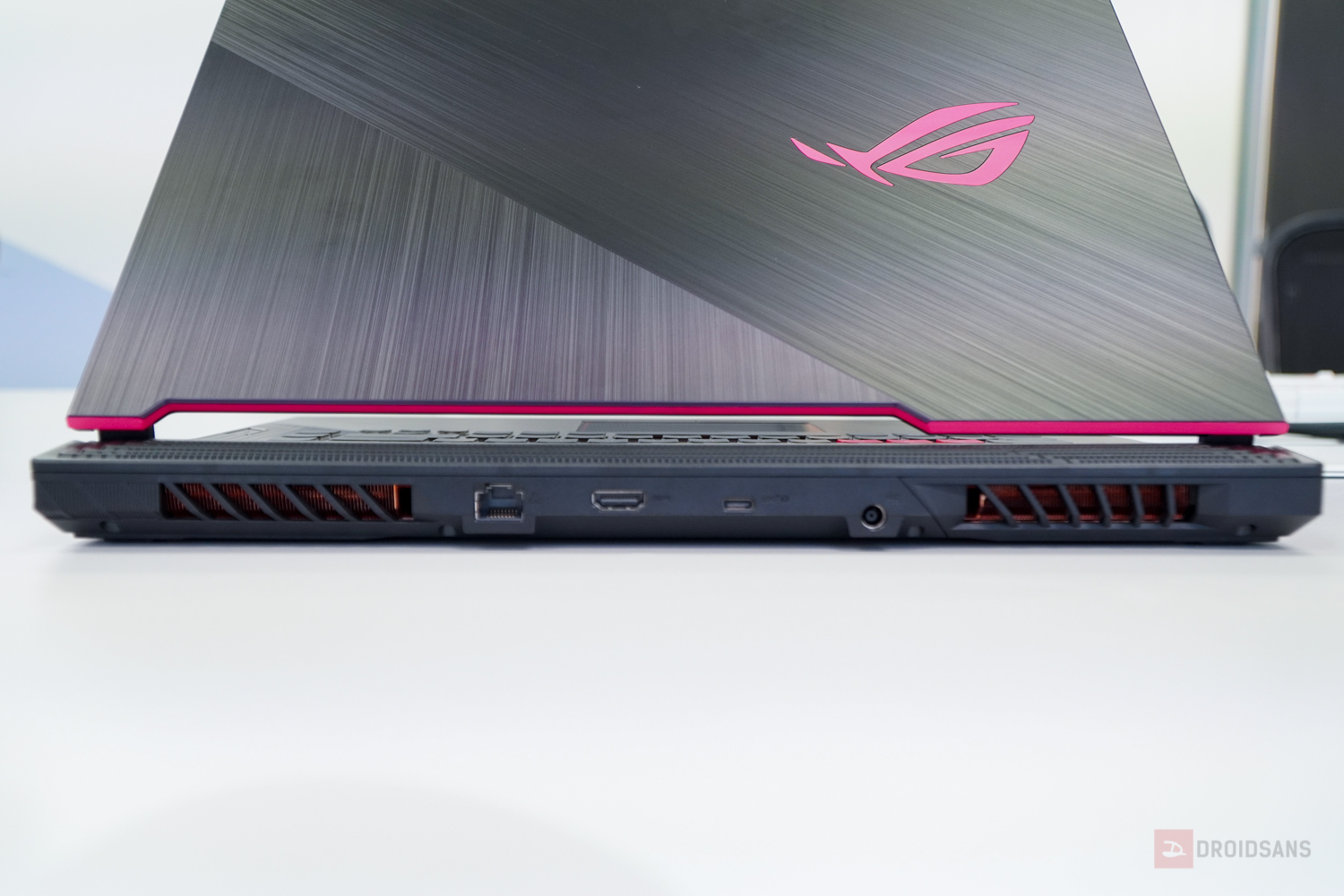 ปิดท้ายด้วยรุ่นน้องเล็กสุด ROG Strix G15 รุ่นใหม่ ที่มาพร้อมสีชมพู Pink Electro Punk เอาใจสายเกมเมอร์สาวโดยเฉพาะ โดยฝาหลังยังคงดีไซน์แบบเดิม เพิ่มเติมคือเปลี่ยนปุ่ม WASD เป็นสีชมพู พร้อมไฟโลโก้ ROG และกรอบด้านข้างเป็นสีชมพูอีกด้วย เรียกได้ว่าสีสันดูฉูดฉาดไม่เหมือนใครเลยทีเดียวครับ
