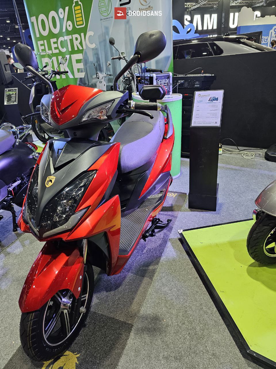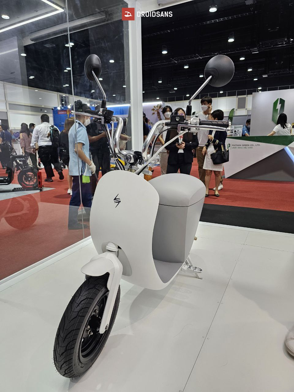 ตัวต่อมาเป็น รถจักรยานยนต์ไฟฟ้าภายใต้แบรนด์ SUPER SOCO มีกลิ่นอายของรถ Neo-Retro ที่ดูแบบผ่าน ๆ แล้วจะทำให้เรานึกถึง Husqvarna Svartpilen ที่มาพร้อมกับไฟหน้าแบบ LED ทรงกลมโต ใช้กำลังไฟฟ้าของมอเตอร์ 3900 วัตต์ แบตเตอรี่ Lithium ความจุ 72V/45Ah ชาร์จไฟเต็ม 4-9 ชั่วโมง ความเร็วสูงสุด 95Km/h ระยะทางวิ่งได้สูงสุด 92Km