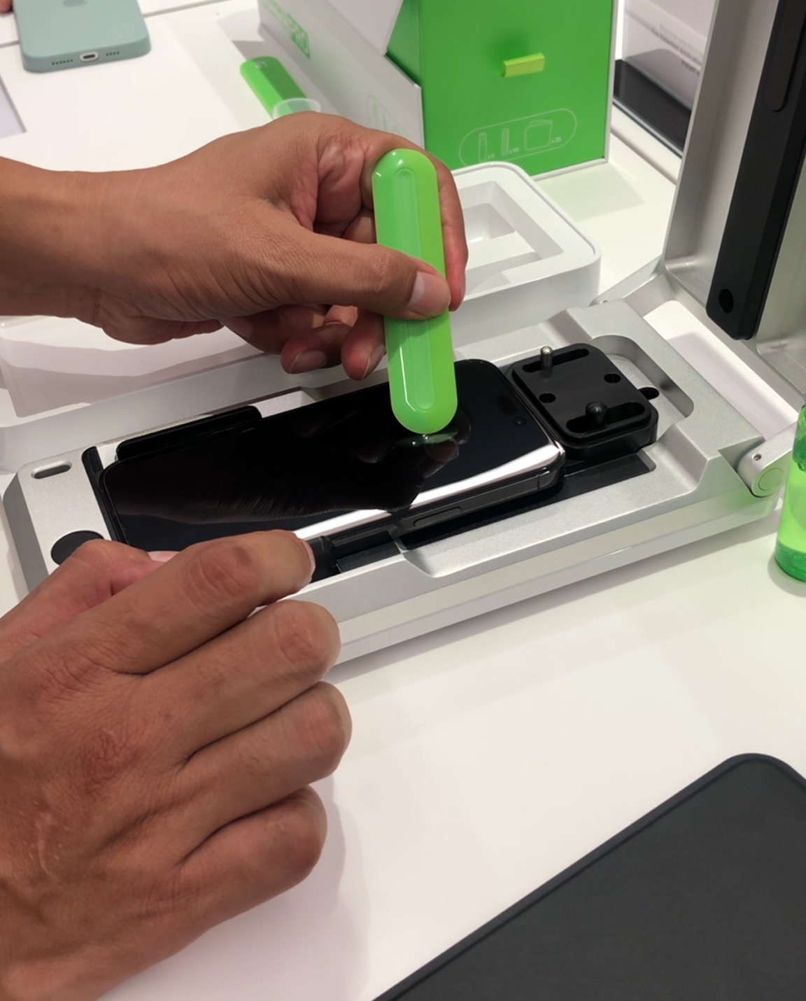 ScreenForce™ PRO จะช่วยเพิ่มประสิทธิภาพในการให้บริการติดฟิล์มป้องกันหน้าจอกับสมาร์ทโฟนของลูกค้าได้ดียิ่งข้ึน เพราะมีความรวดเร็ว ใช้เวลาเพียง 1 นาที หมดกังวลกับปัญหาการเกิดฟองอากาศ และการติดในตำแหน่งที่ไม่พอดี เสียดายที่เครื่องนี้ไม่ได้ขายให้คนทั่วไป เป็นการขายให้ร้านค้าเพื่อนำไปบริการลูกค้าเท่านั้น