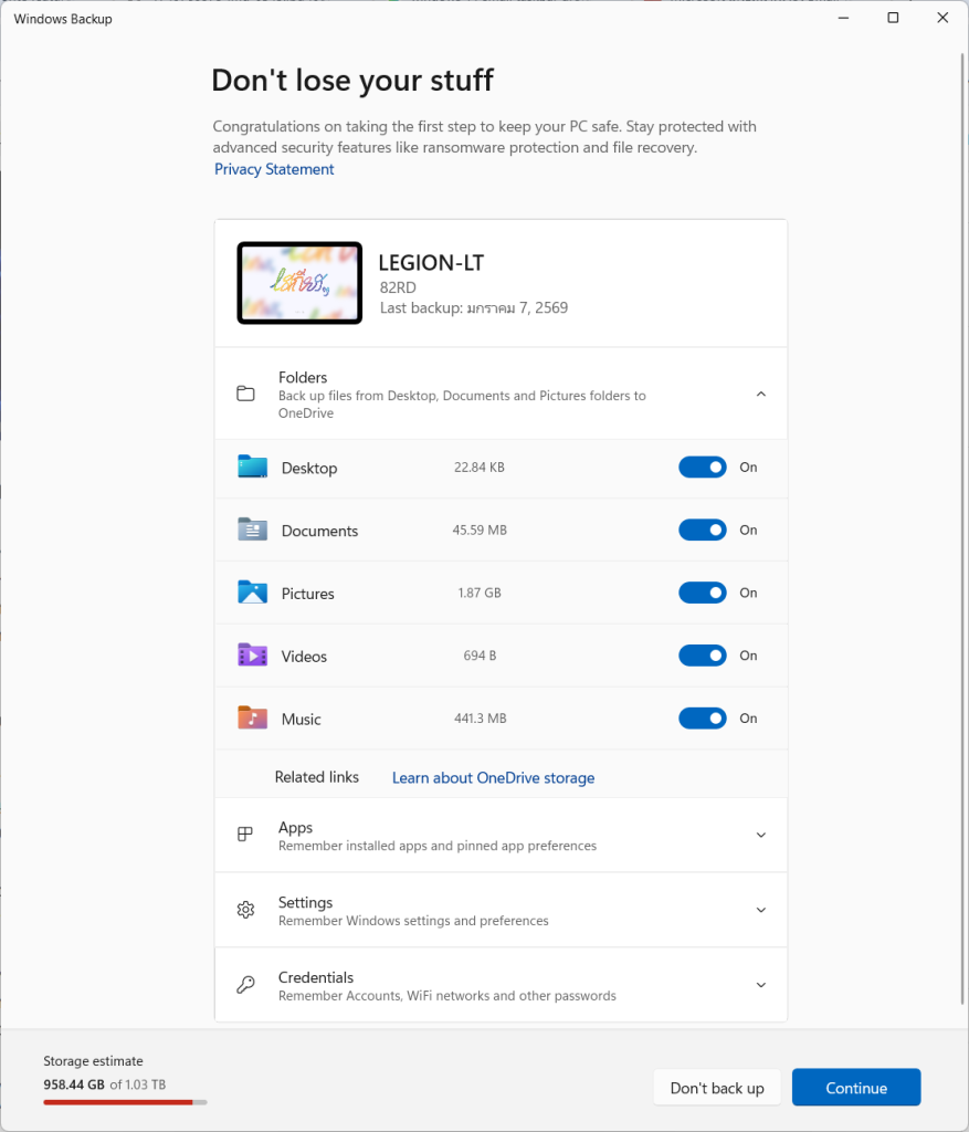 ในทางกลับกัน สำหรับผู้ที่สมัครใช้งาน Microsoft 365 อยู่แล้ว ฟีเจอร์นี้ถือว่าน่าใช้งานมากขึ้นอย่างชัดเจน เนื่องจากได้รับพื้นที่ OneDrive ขนาด 1 TB ซึ่งเพียงพอสำหรับการสำรองข้อมูลจำนวนมาก และช่วยให้การย้ายเครื่องหรือกู้คืนระบบทำได้สะดวกยิ่งขึ้น